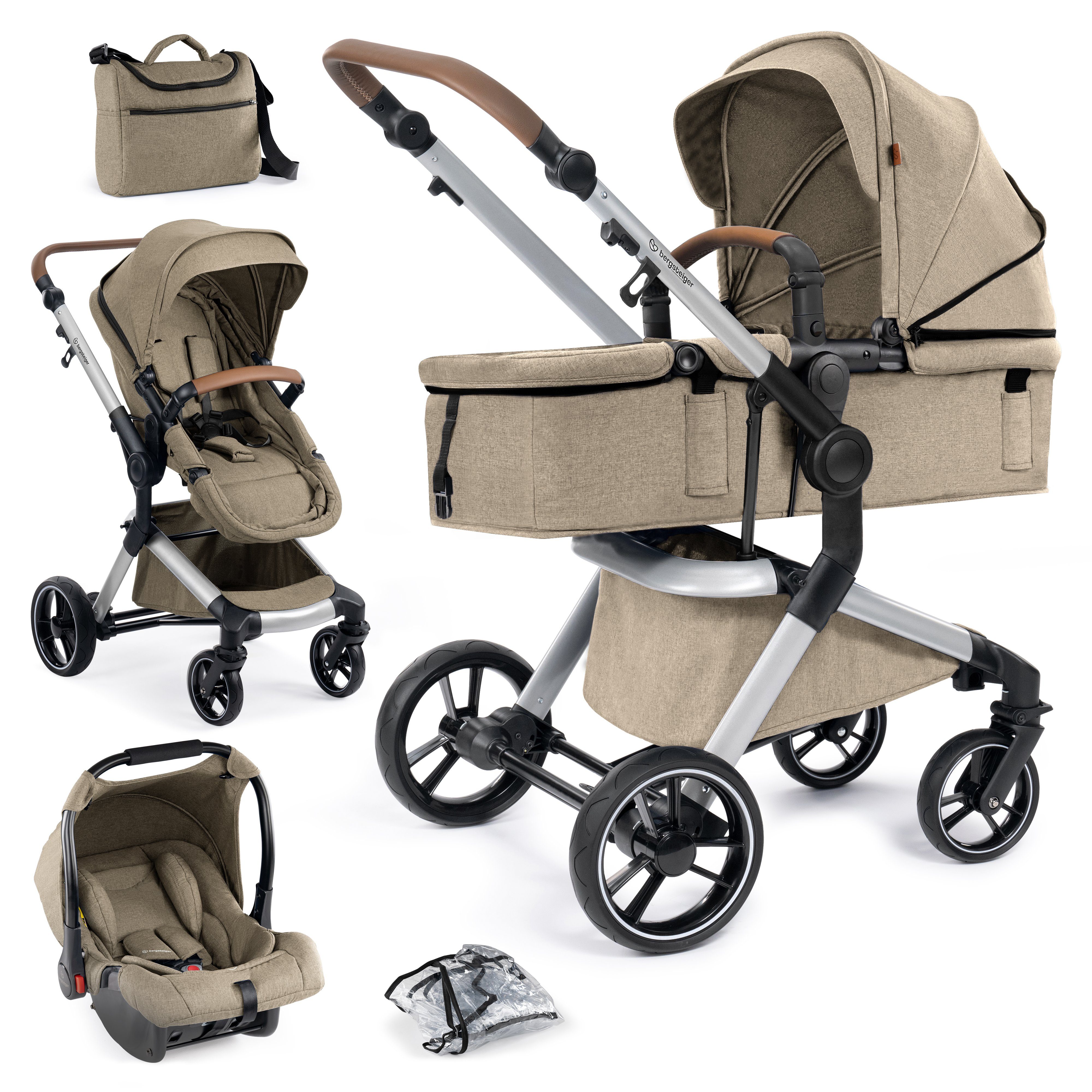 3 IN 1 KOMPLETTSET - Ihr Sorglospaket ab der Geburt bis ins Kleinkindalter. Lieferung inkl. Babyschale, Babywanne/ Buggy, Sonnenschutz, Fußsack. Ideale Mobilität direkt ab Geburt.