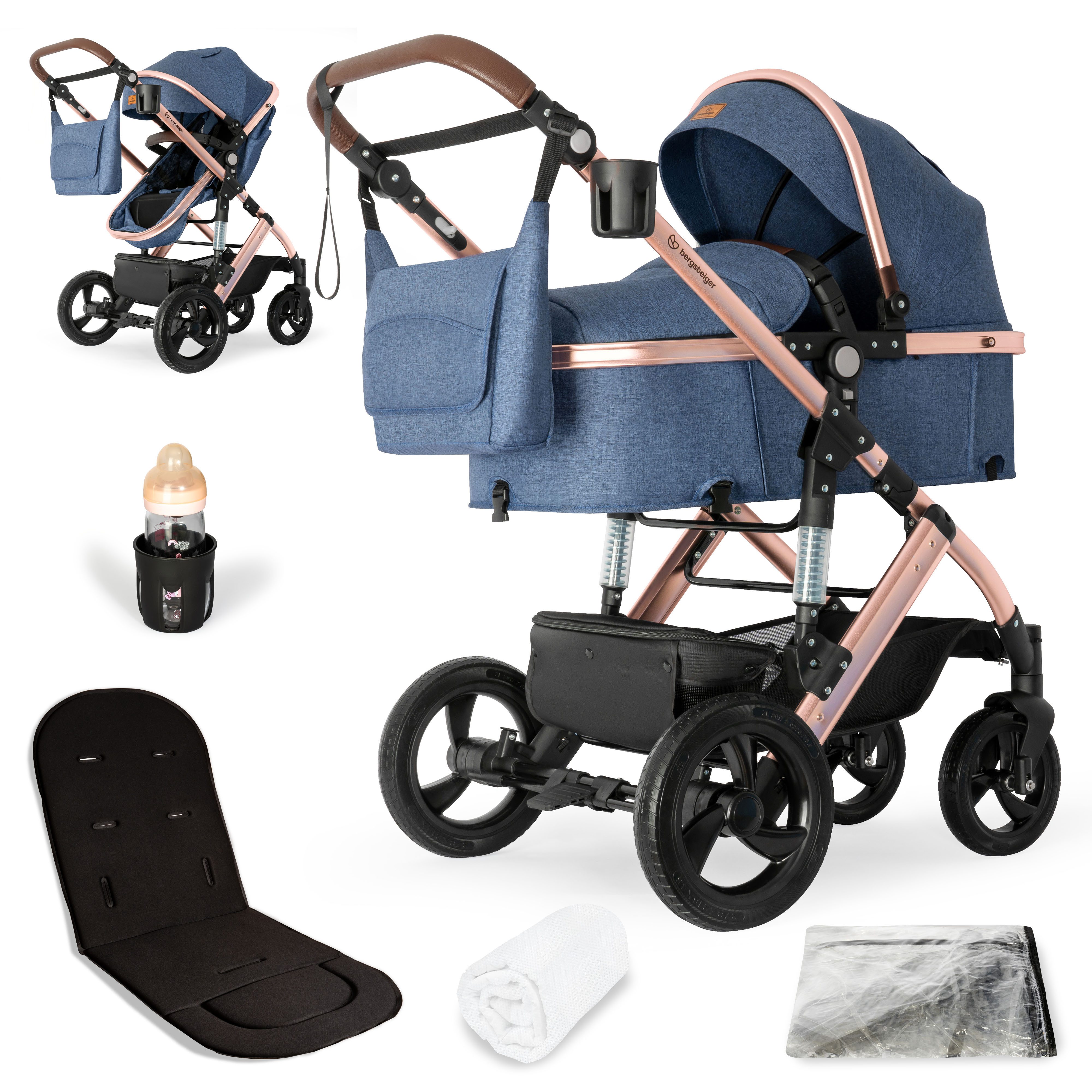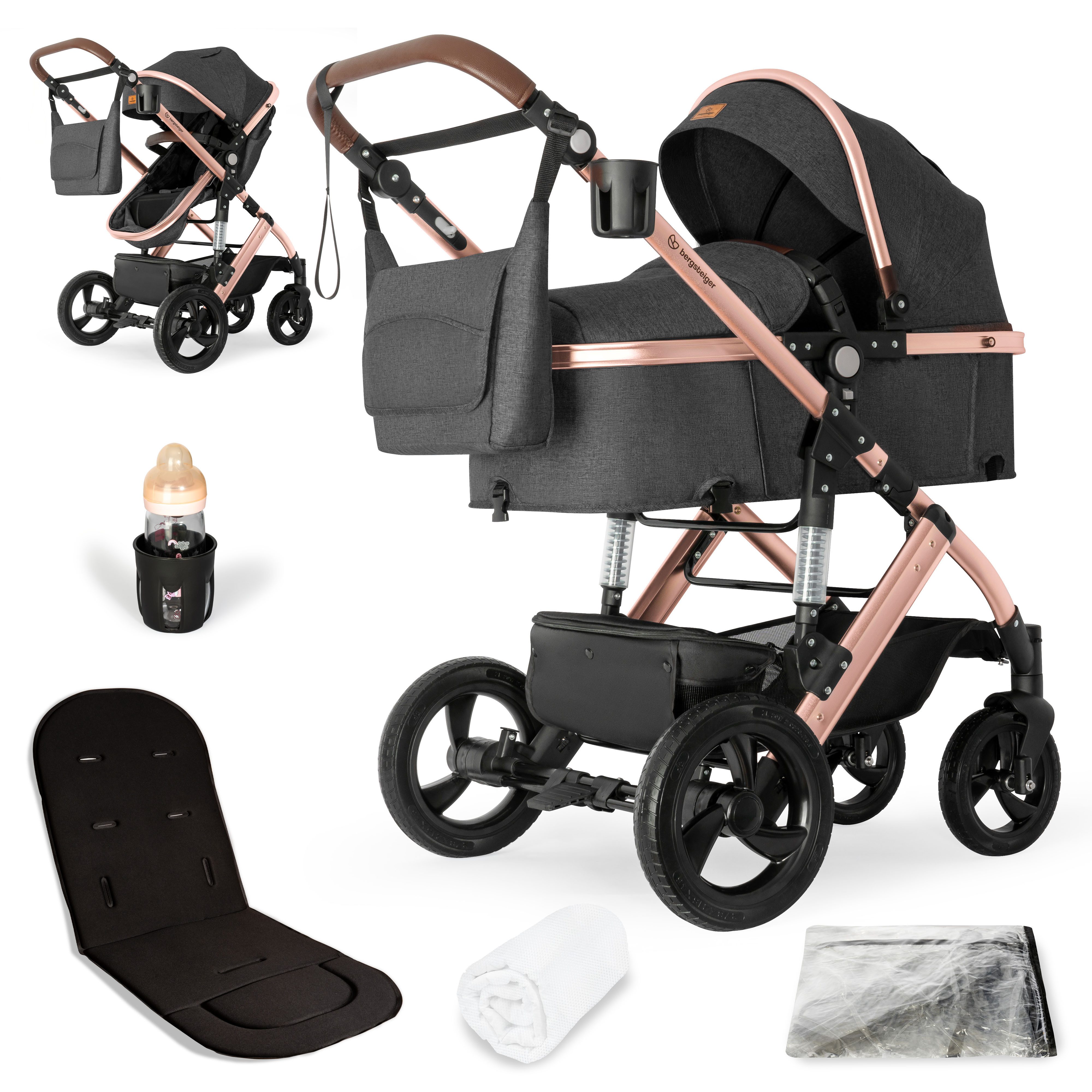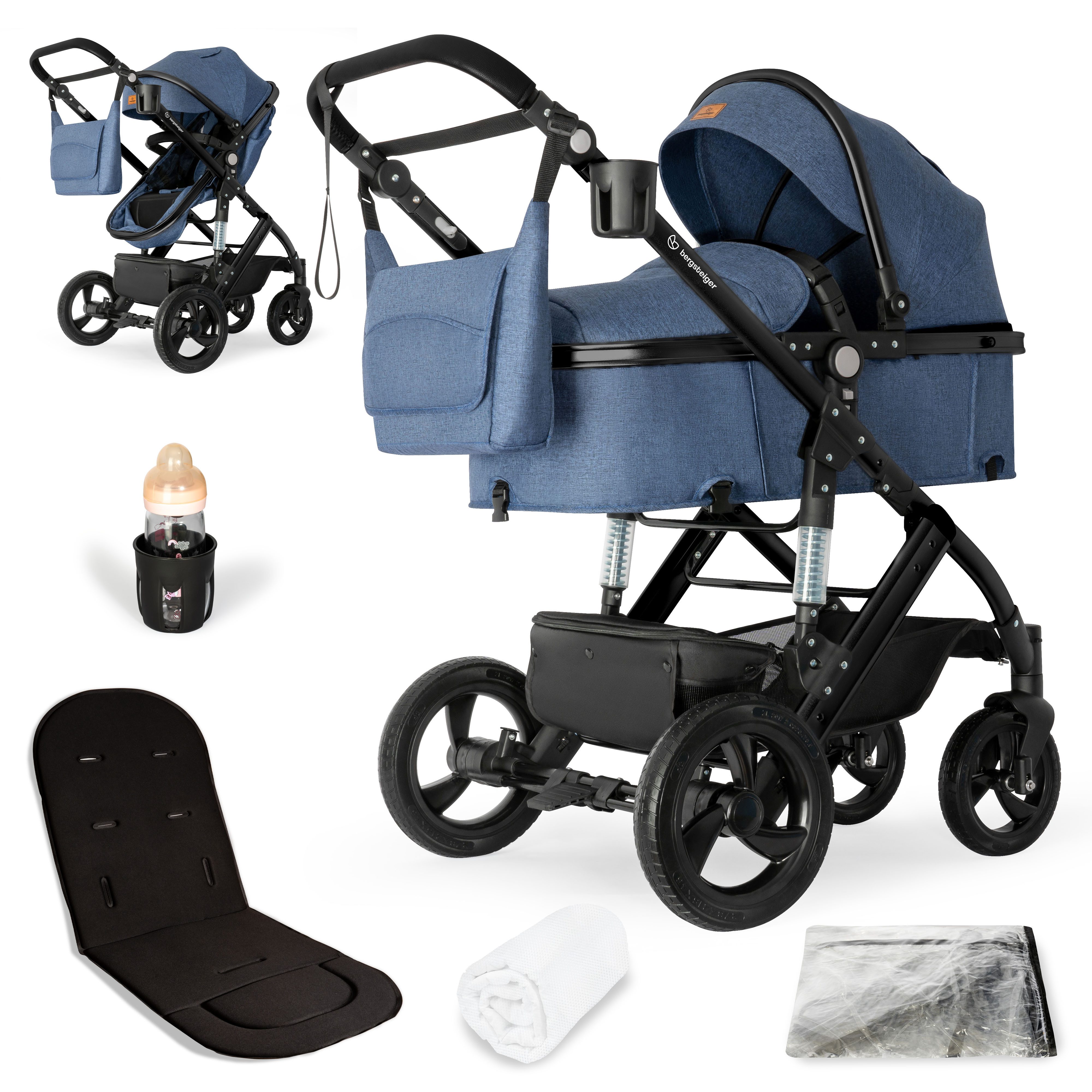 bergsteiger Kombi-Kinderwagen Nizza 3 in 1 Kinderwagen, Auto-Babyschale & Isofix Station