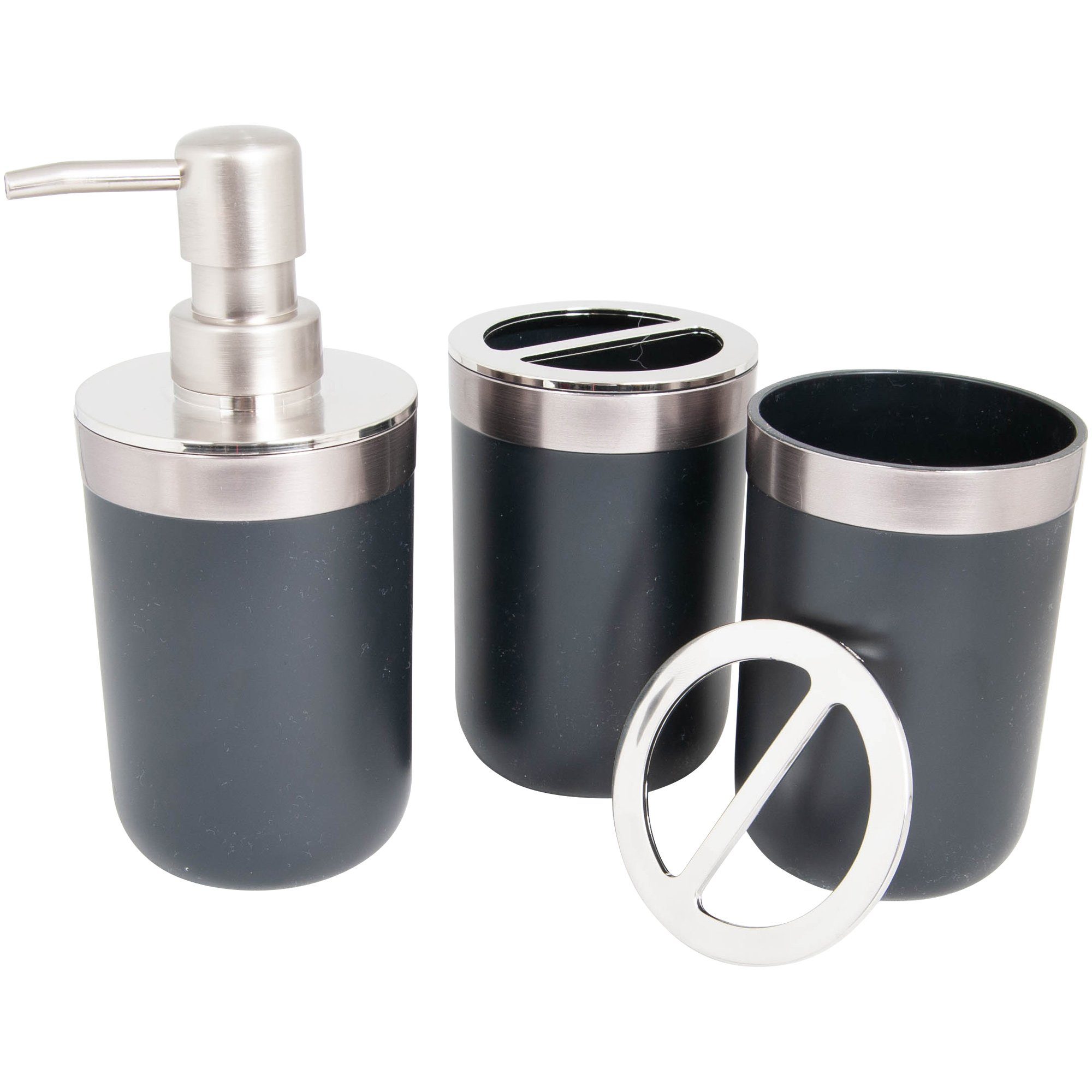 Badezimmerset aus 1x Pumpspender, 2x Bechere mit Trennelement in Edelstahloptik