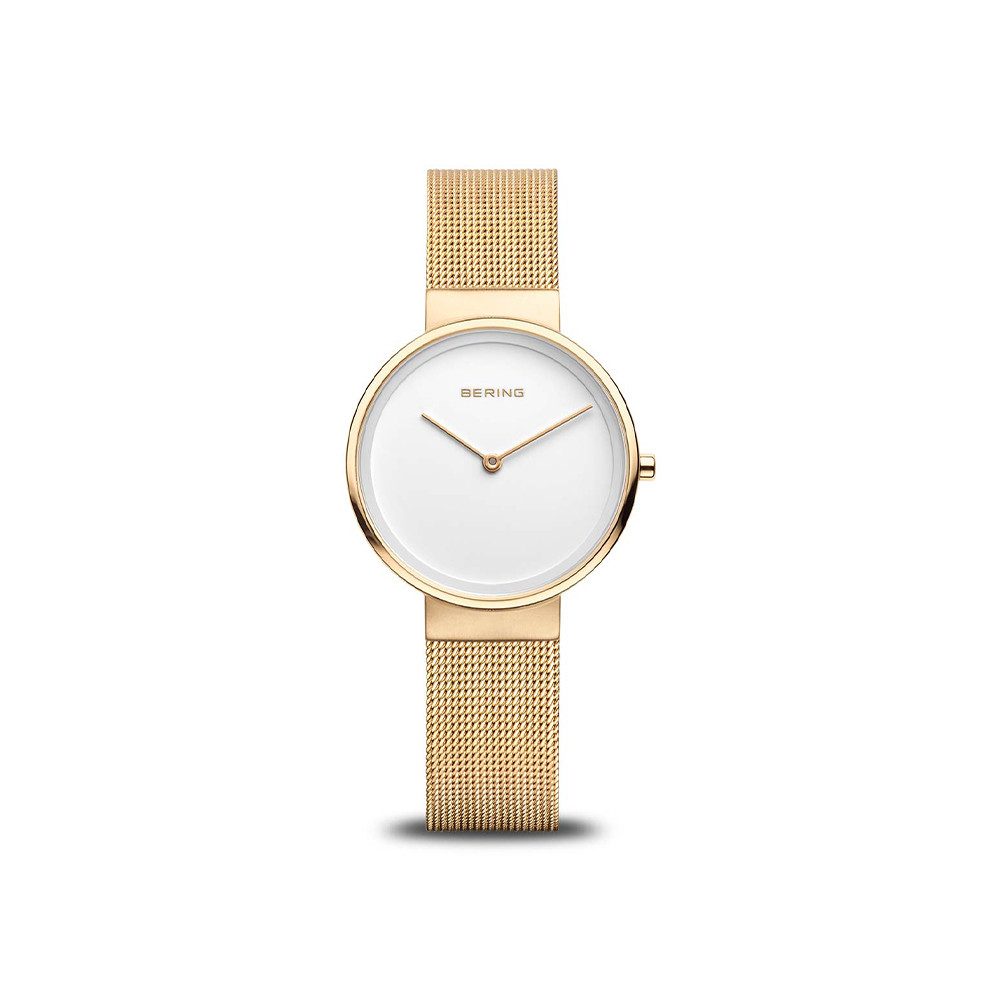 Die Bering Classic gold poliert/gebürstet (Artikelnummer: 14531-334) vereint zeitlose Eleganz mit modernem Design. Das poliert-gebürstete Gehäuse aus hochwertigem Edelstahl und das schlichte weiße Zifferblatt ergeben zusammen einen klassischen Look. Das goldene Milanaise-Armband ergänzt die harmonische Optik und macht die Uhr zu einem stilvollen Begleiter für jeden Anlass. Perfekte Materialien und klare Linien spiegeln den unverkennbaren BERING-Stil wider.