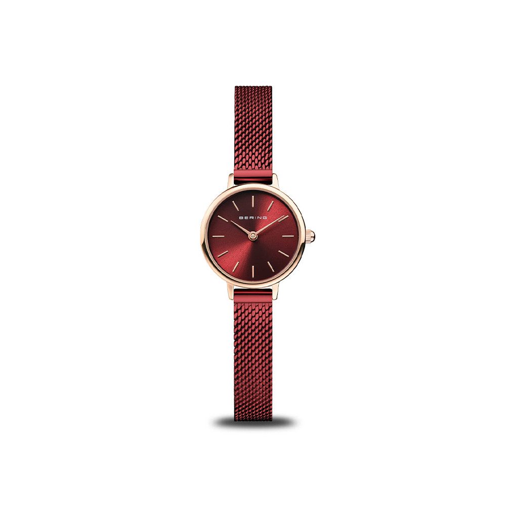 Die Bering Classic roségold glänzend verbindet zeitlose Eleganz mit einem Hauch von Extravaganz. Das Zusammenspiel von roségoldenem Edelstahl, leuchtendem Rot und der filigranen Verarbeitung macht diese Uhr zu einem einzigartigen Begleiter. Perfekt für stilbewusste Damen, die ein luxuriöses Accessoire mit modernem Design suchen.
