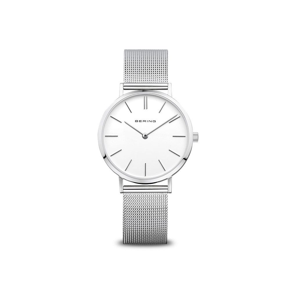 Die Bering Classic (Artikelnummer: 14134-004) verkörpert minimalistischen Stil und klassische Eleganz in Perfektion. Ihr silber glänzendes Edelstahlgehäuse, das weiße Zifferblatt und das feingliedrige Milanaise-Armband machen diese Uhr zu einem zeitlosen Accessoire. Mit einem kratzfesten Saphirglas und einem zuverlässigen Quarzuhrwerk ist sie ideal für jeden Tag und jeden Anlass.