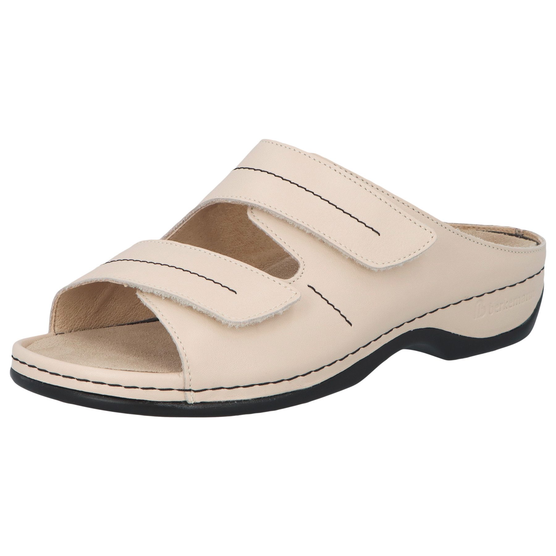 Wechselfußbett und Klettverschlüsse – Eine Kombination aus Komfort und Funktion vereint und im Modell Daria von Berkemann puristisch umgesetzt WIRD. Dabei lassen sich beide Riemen mit den Klettverschlüssen bequem öffnen und schließen und sorgen durch die perfekte Anpassung an die gegebene Fußanatomie für ideale Passform und sicheren Halt am Fuß. Darüber hinaus eignet sich dieses Modell zusätzlich für den Einsatz von orthopädischen Maßeinlagen, indem man die vorhandenen lederbezogenen Wechselfußbetten einfach durch die eigenen Maßeinlagen ersetzt.