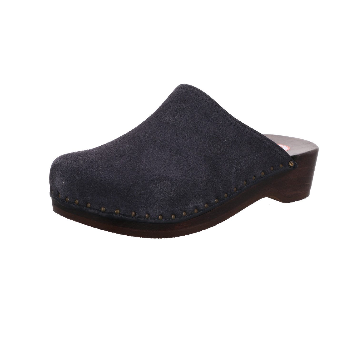 Toeffler – so heißen die kernig-rustikalen Holz-Clogs mit genagelten Schäften bei Berkemann. Ihr Ursprung liegt in den 70ern und sie sind seitdem ununterbrochen, in unterschiedlichen Вариантыn, im Berkemann-Меню vertreten. Mit dem hier gezeigten Velours Toeffler zeigt sich dieses Berkemann-Modell in der klassischen Toeffler-Form von seiner samtigen Seite. Die verwendeten Veloursleder verleihen diesem Clog zugleich eine kernige aber auch weiche Optik und stehen wie kein anderes Leder für das originale 70er-Feeling. Dabei verfügt auch diese Toeffler-Варианты über das Berkemann-typische und in die leichte Pappelholzsohle eingearbeitete Original 5-Phasen-Fußbett, welches den natürlichen Abrollvorgang des Fußes unterstützt. Die ebenfalls durch dieses spezielle Fußbett angeregte Zehengreiffunktion trainiert bei jedem Schritt sowohl Fuß- als auch Wadenmuskulatur und somit werden gleichzeitig die Venenklappen aktiviert. Darüber hinaus dämpft noch die schockabsorbierende Zwischensohle die Auftrittsenergie, bis hoch zur Wirbelsäule ab.
