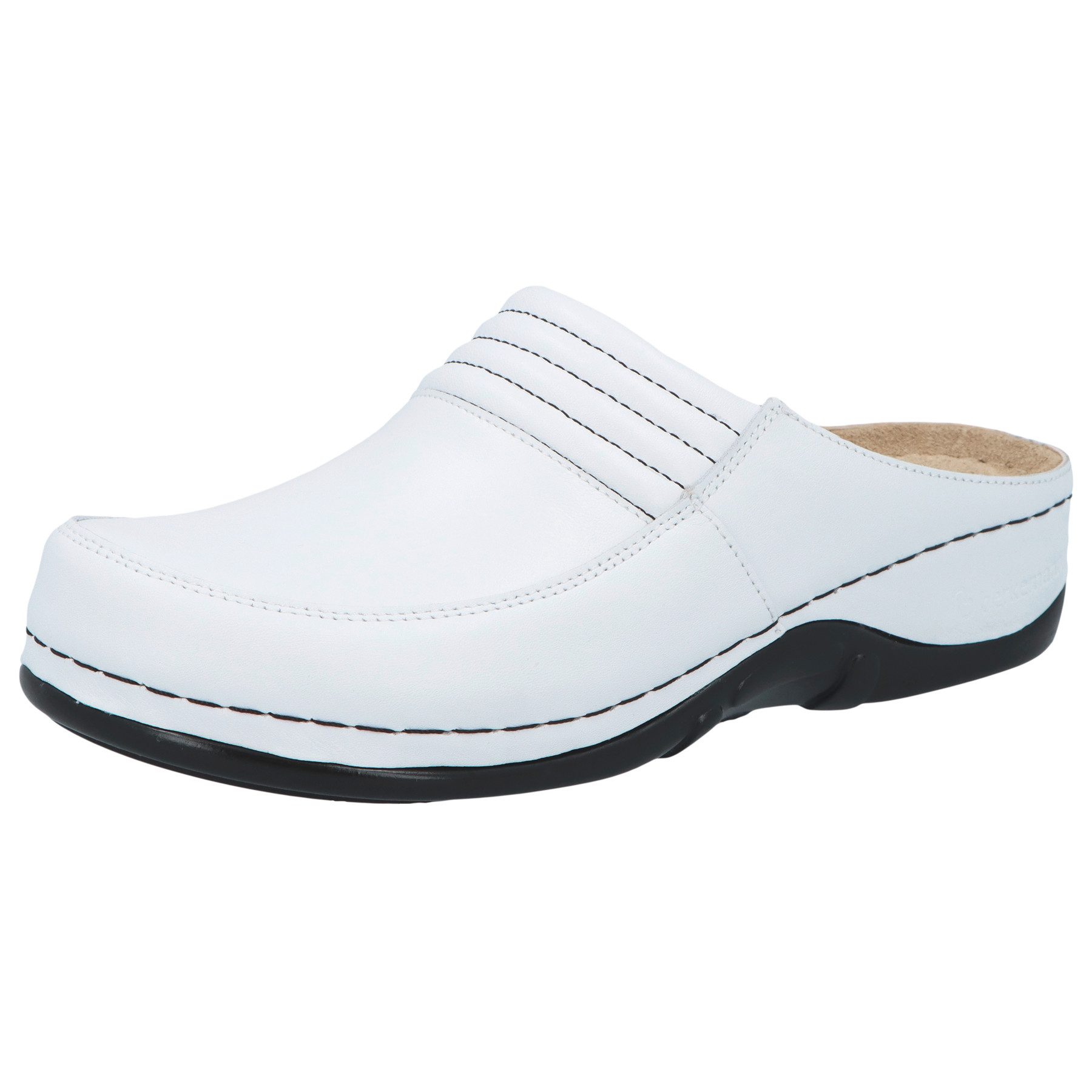Mit dem Komfortschuh Victoria präsentiert Berkemann einen bequemen, zeitlos klassischen Clog. Das Modell überzeugt durch einen weich gepolsterten, abgesteppten Schaftrand im Bereich des Fußrückens, der sicheren Halt bietet, sowie durch eine lederbezogene Auftrittsfläche in fußgerechter Weite. Gefertigt aus atmungsaktivem italienischem Leder, passt sich der Schuh dank des innenliegenden Gummizugs flexibel unterschiedlichen Risthöhen an. Zusätzlichen Komfort bietet das Echtlederfutter, das den Tragekomfort auch bei längerem Tragen spürbar erhöht.