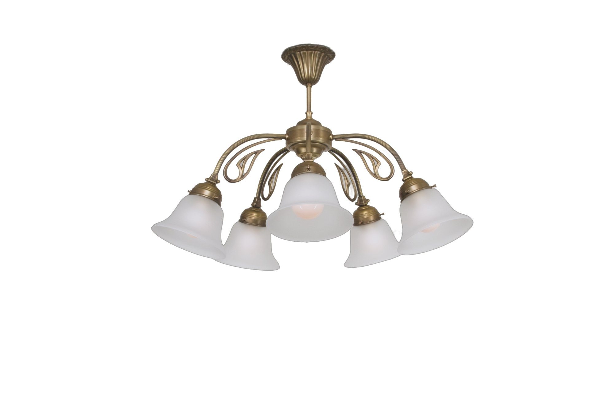 Wenn der Jugendstil mit der Moderne einen stilvollen Kaffee trinkt, kommt dabei der Kronleuchter D258-40gs-B heraus. Diese handgefertigte Deckenleuchte kombiniert verspielte Ornamente in Berliner Messing mit dezent geschwungenen, grau satinierten Glasschirmen – eine Blütenpracht mit Lichtfunktion, ganz ohne Gießkanne.