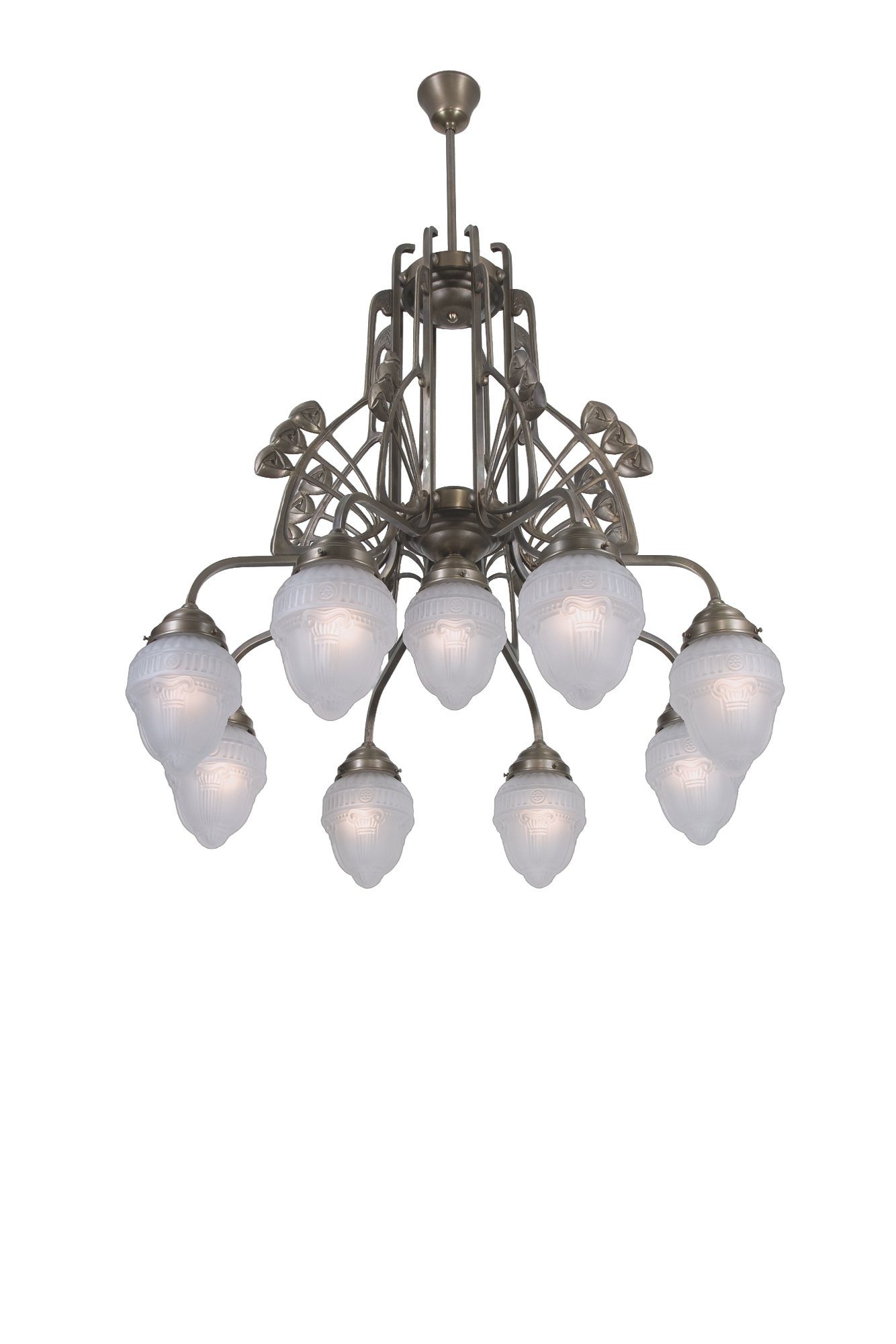 Die Kronleuchter D288-113gs B von Berliner Messinglampen ist eine zeitlose und stilvolle Wahl für jedes Interieur. Mit einer Breite von 80 cm und einer Höhe von 136 cm bietet sie ausreichend Licht für jede Situation. Das Lampengestell ist im charakteristischen Berliner Messing-Finish gestaltet und das Glas ist grau satiniert. Die Leuchte verfügt über 9 E27-Fassungen und kann mit Leuchtmitteln bis zu 40 Watt betrieben werden. Mit einem Gewicht von 19 kg und stabförmigen Aufhängungen mit einer Длина von 50 cm ist sie stabil und sicher befestigt. Es ist eine wirtschaftliche Wahl und die Lieferung erfolgt in der Regel innerhalb von 3-4 Wochen direkt ab Werk oder bei Sonderanfertigungen direkt nach Применитьstellung.