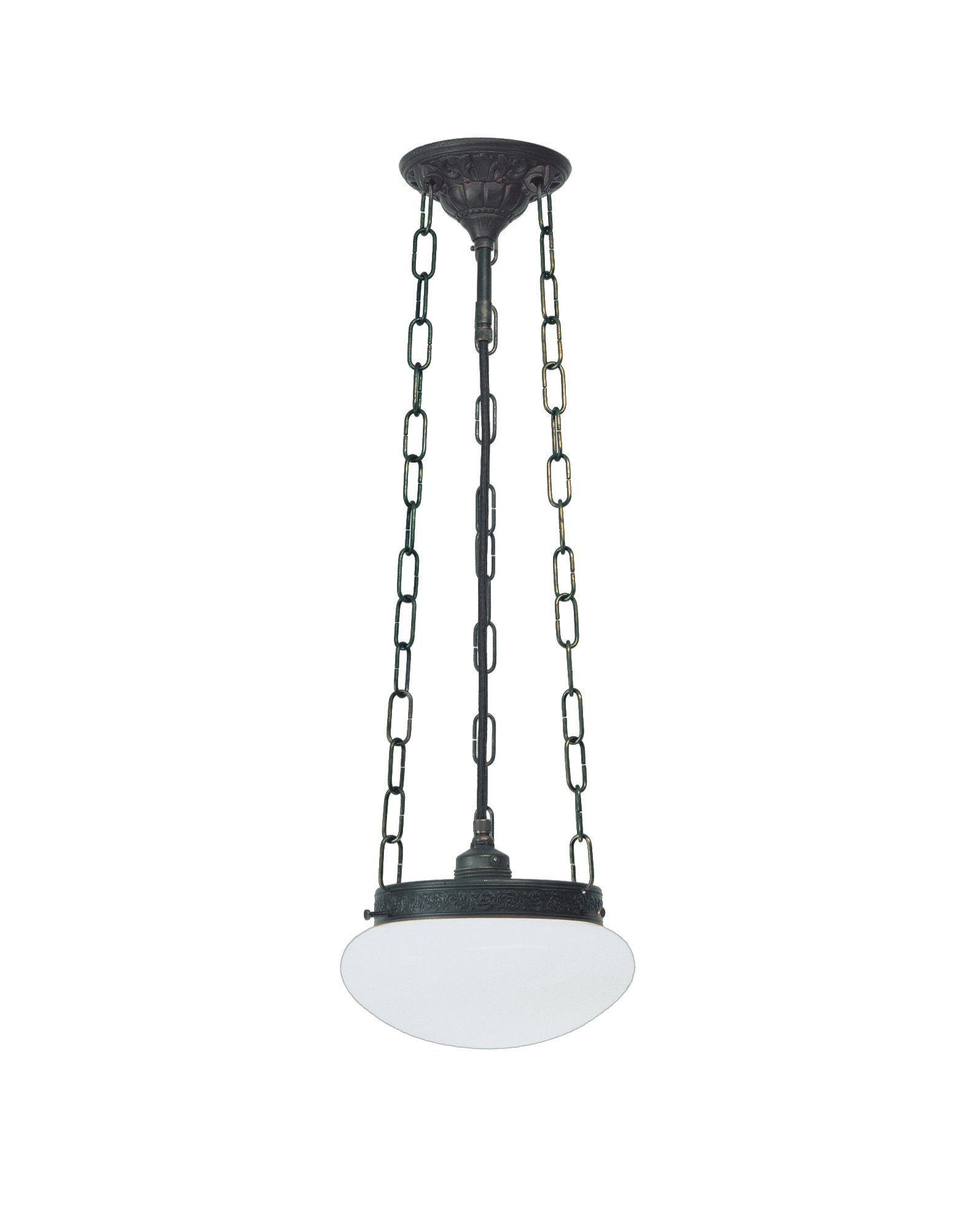 Die Deckenleuchte D4-126op A von Berliner Messinglampen ist eine stilvolle und moderne Beleuchtungslösung für Ihr Zuhause. Das Lampengestell ist in einem antiken Finish gehalten und bietet eine zusätzliche Hinguckerqualität. Das Leuchtmittel ist nicht im Lieferumfang enthalten und es ist eine max. Leistung von 100 Watt erlaubt. Die Höhe beträgt 60 cm und die Breite 20 cm. Es gibt eine Fassung vom Typ E27. Die Kettenlänge beträgt 50 cm und der Glasbehälter ist in einer opalweißen Farbe gehalten. Genießen Sie eine stimmige Beleuchtungslösung in modernem Design und mit stilvoller Note.