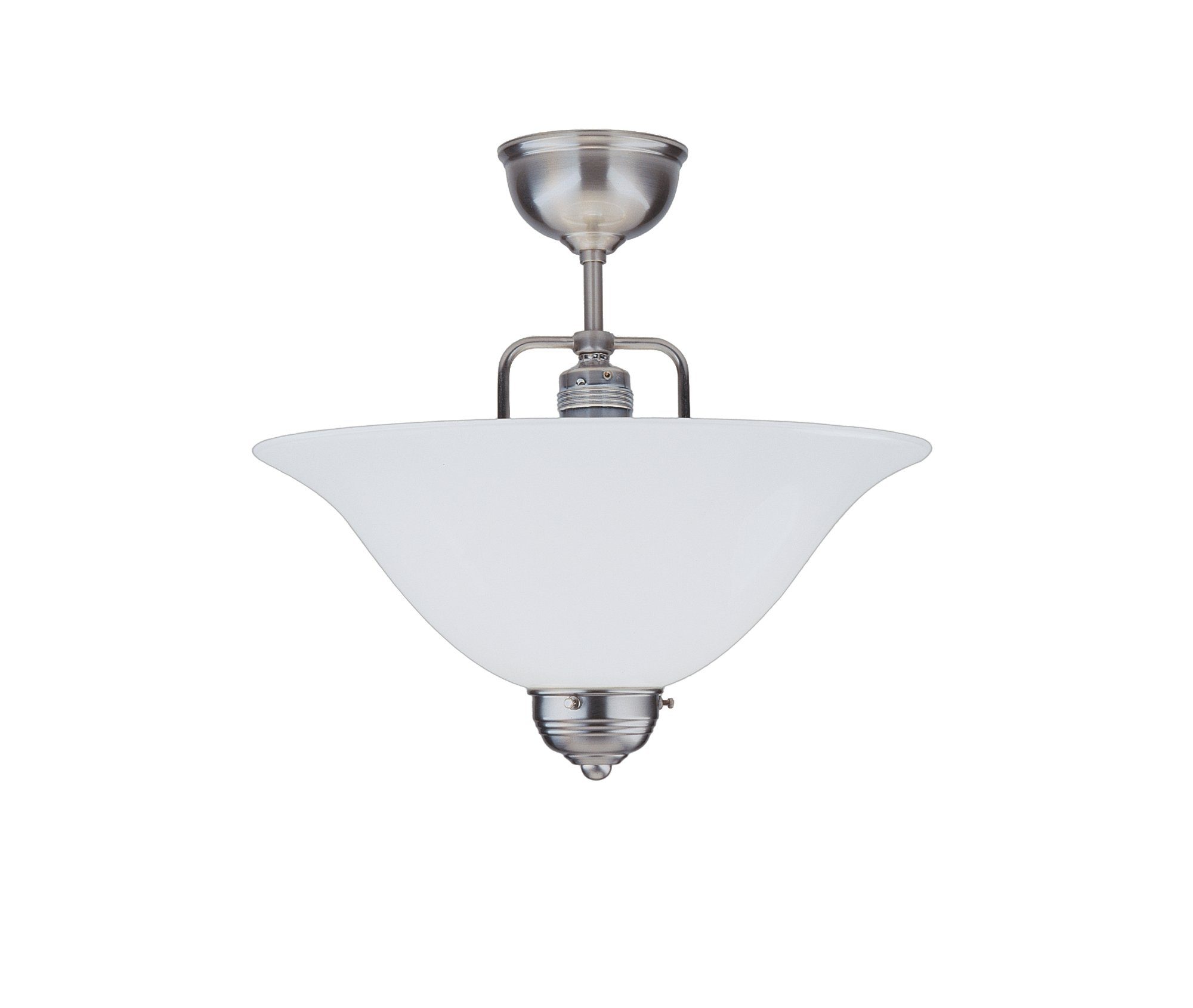 Der Opalglasschirm zeigt, wie aufregend schlicht sein kann: mit sanft ausladender Silhouette, die an eine stilisierte Blüte erinnert. Das nickelmatte Gestell rundet den Look edel ab – modern, aber mit einem Hauch Retro-Flair.