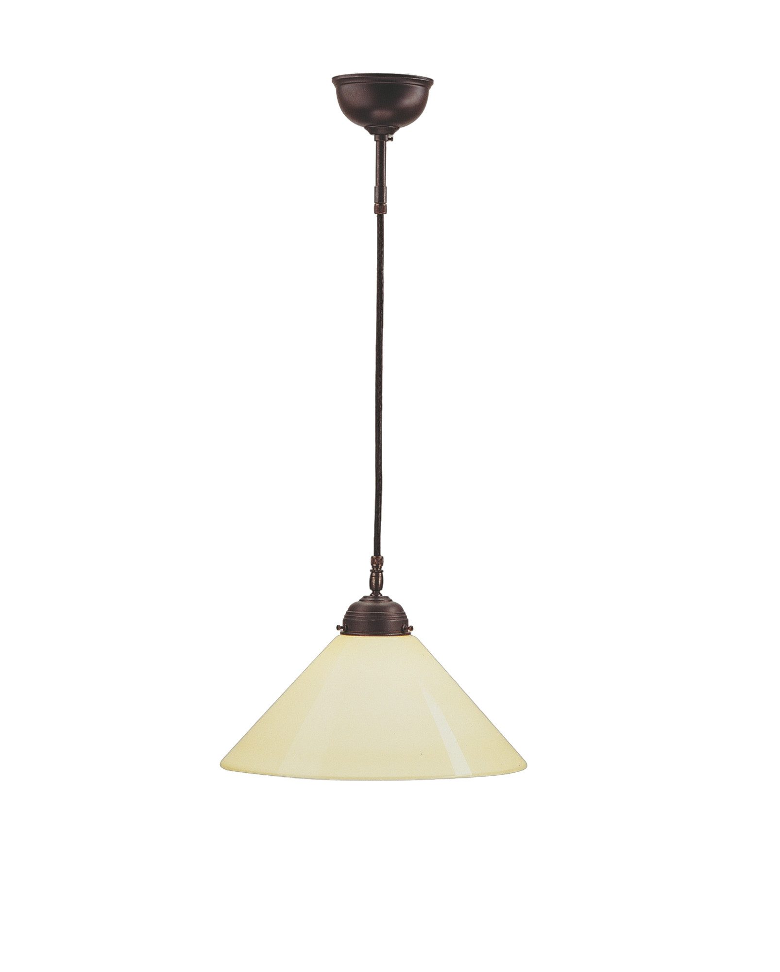 Ob über dem Esstisch, in der Küche oder als stilvolle Flurbeleuchtung – diese Leuchte ist ein echter Allrounder. Das antik veredelte Gestell trifft hier auf ein sanft schimmerndes elfenbeinfarbenes Glas, das für stimmungsvolle Lichtmomente sorgt.