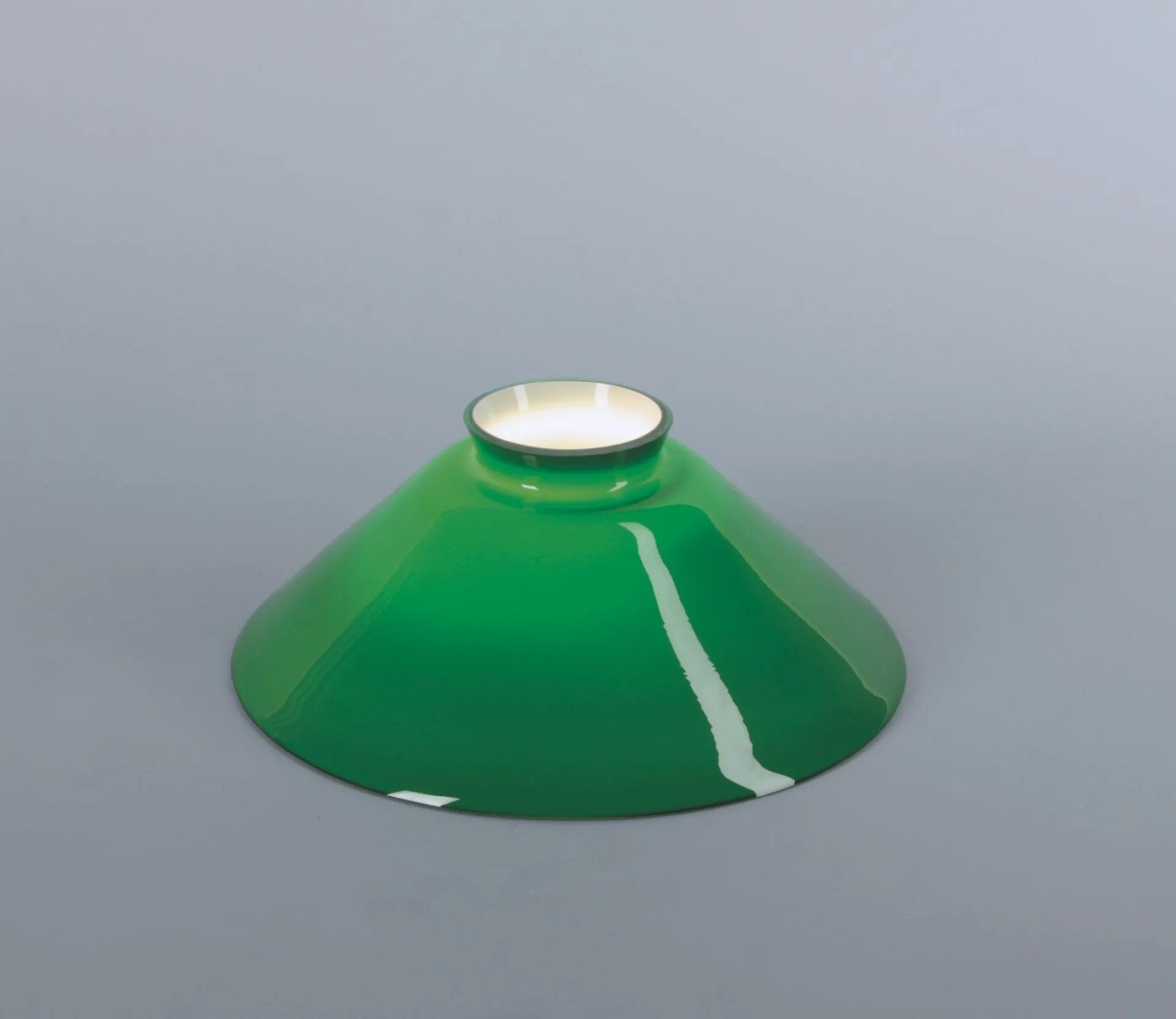 Berliner Messinglampen bietet eine große Auswahl an Lampenschirmen in verschiedenen Größen, Farben und Formen. Der Lampenschirm Grün 17gr ist ein konischer Lampenschirm aus Glas mit einem Griffrand von ca. 6 cm.