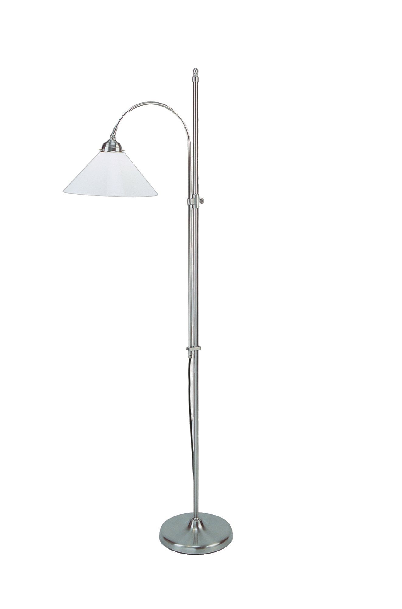 Die Bodenstehleuchte ST02-70op N ist ein modernes und elegantes Produkt von Berliner Messinglampen. Sie verfügt über ein Lampengestell mit Nickel matt Finish und ist mit einer Fassung für eine E27-Leuchtmittel ausgestattet. Bitte beachten Sie, dass das Leuchtmittel nicht im Lieferumfang enthalten ist und mit maximal 60 Watt betrieben werden kann. Das Design der Leuchte wird durch das opalweiße Glas abgerundet. Die Maße der Stehleuchte betragen 160 cm in der Höhe und 30 cm in der Breite bzw. im Durchmesser.