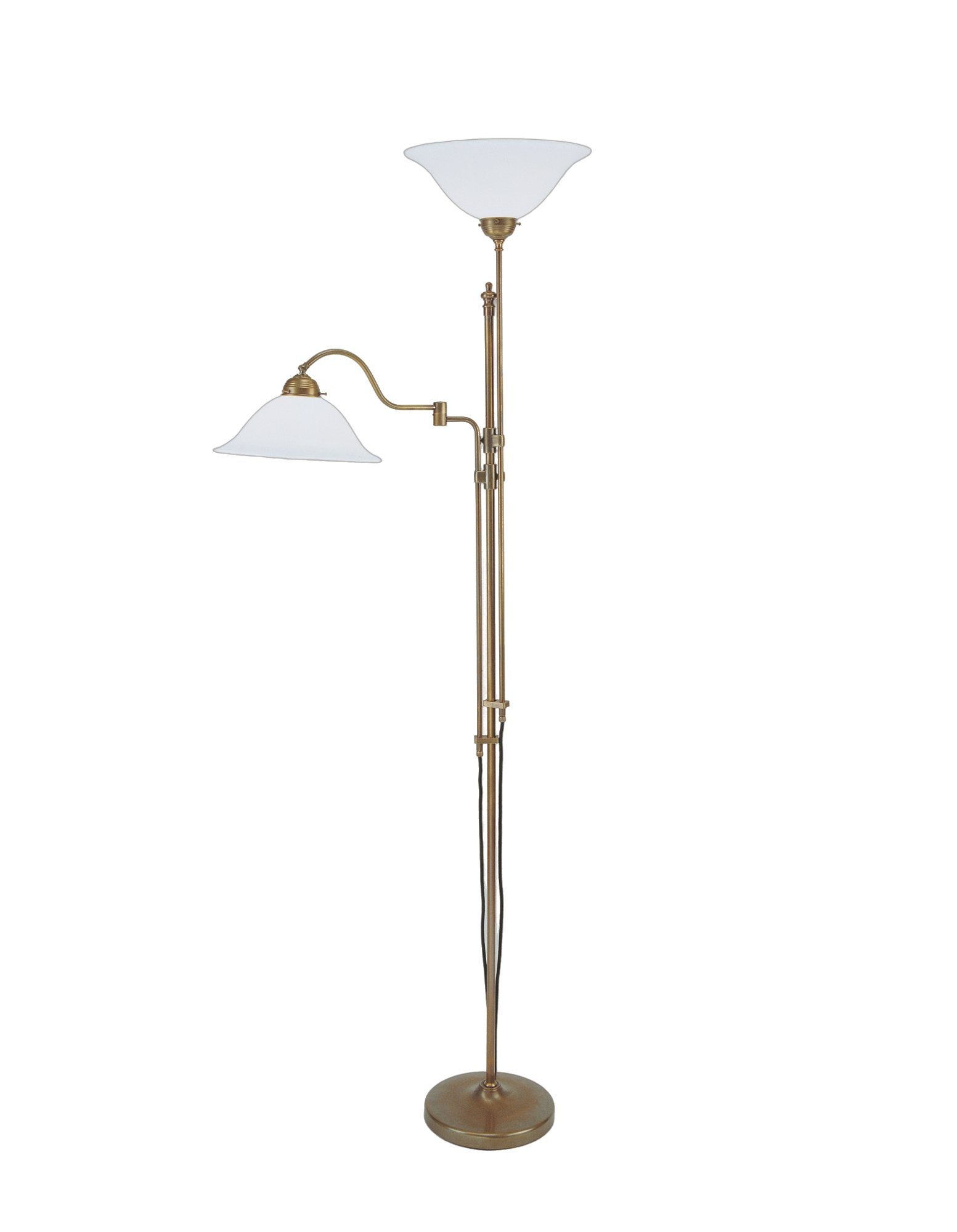 Die Bodenstehleuchte T5T4ST02-38op+90op B von Berliner Messinglampen ist ein zeitloses und stylisches Designobjekt. Mit 2 x E27 Fassungen und einer Leistung von max. 60 Watt ist sie ein echtes Highlight. Das Lampengestell ist aus Berliner Messing gefertigt und die Glasfarbe ist Opalweiß. Die Leuchte ist als Fluter verwendbar und ermöglicht eine Leistung von max. 100 Watt. Die Höhe beträgt min. 200 cm.