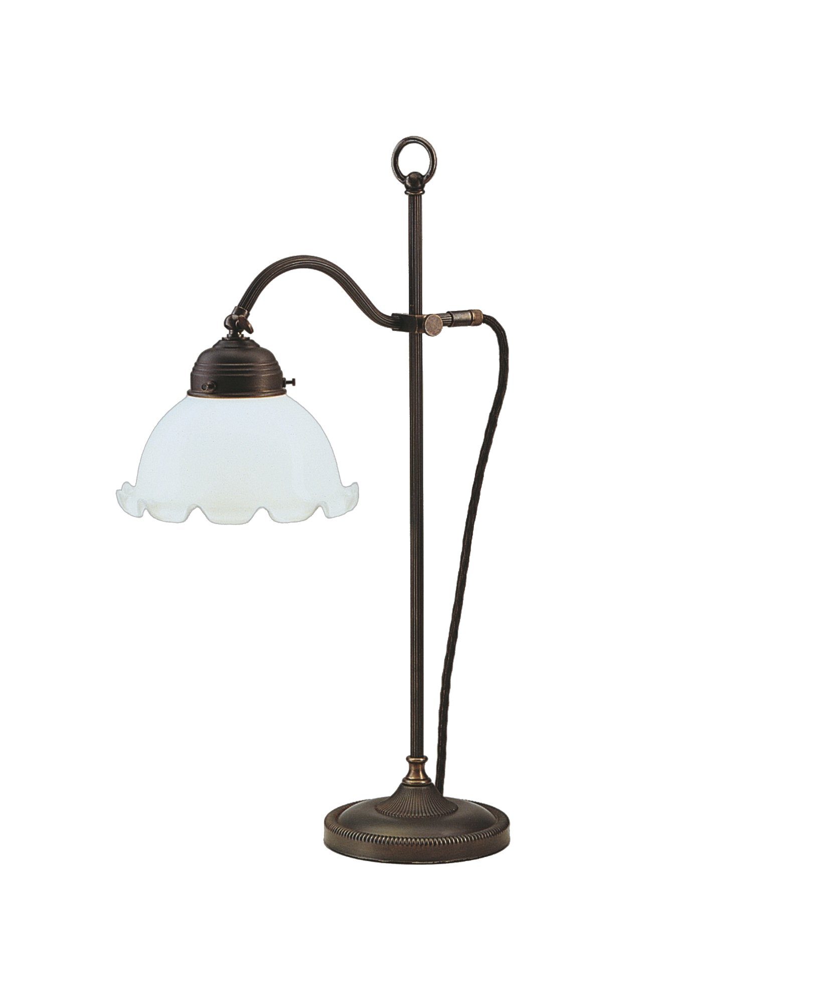 Die Tischleuchte ist in der Glasfarbe Opalweiß erhältlich und verfügt über ein Lampengestell in Antik-Finish. Obwohl das Leuchtmittel nicht im Lieferumfang enthalten ist, kann die Leuchte problemlos ein Leuchtmittel mit einer Leistung von bis zu 60 Watt aufnehmen.