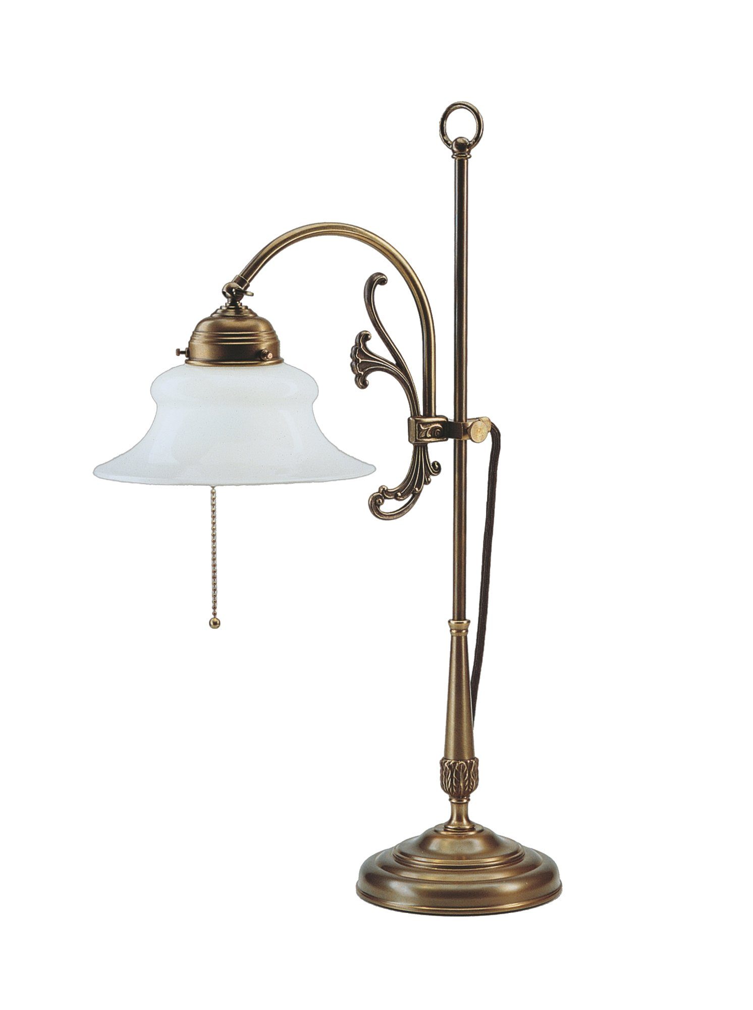 Mit dieser Leuchte holen Sie sich einen kleinen Hauch Belle Époque auf den Schreibtisch! Die T4G6-29op-B ist eine handgefertigte Tischleuchte, bei der sich Berliner Messing und mundgeblasenes Opalglas charmant die Hand reichen. Und das Beste: Sie wird ganz klassisch per Zugkette eingeschaltet – fast schon zu schön für nur funktionales Licht!