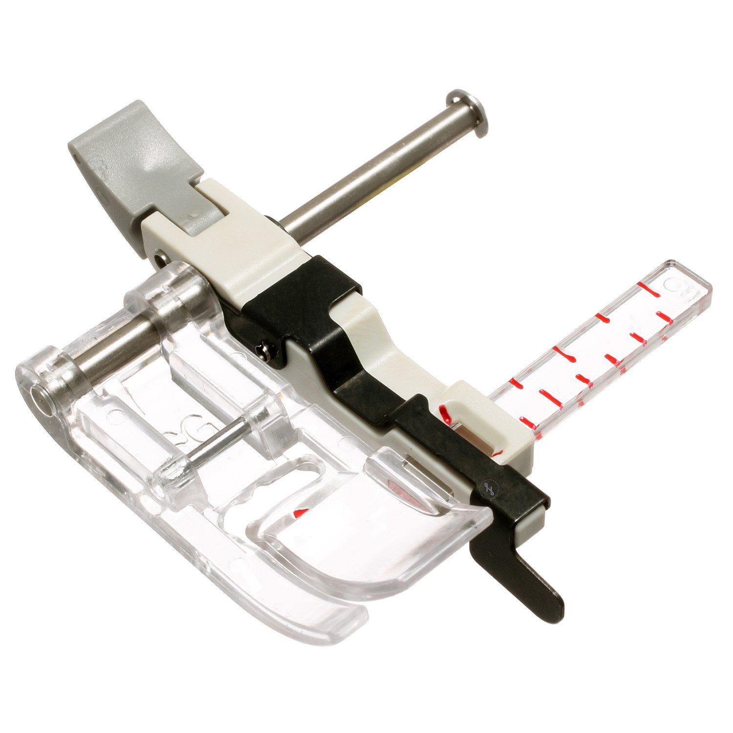 Der Bernette Zickzack-Nähfuß mit Führung ermöglicht Nähen mit exaktem Abstand von bis zu 30 mm zu einer Stoffkante oder bereits genähten Naht. Der Führungsarm hat dabei die gebräuchlichsten Nahtzugaben von 10, 15, 20, 25 und 30 mm schon markiert und kann schnell eingestellt werden. Auch ideal geeignet zum Quilten paralleler Linien oder zum Absteppen.