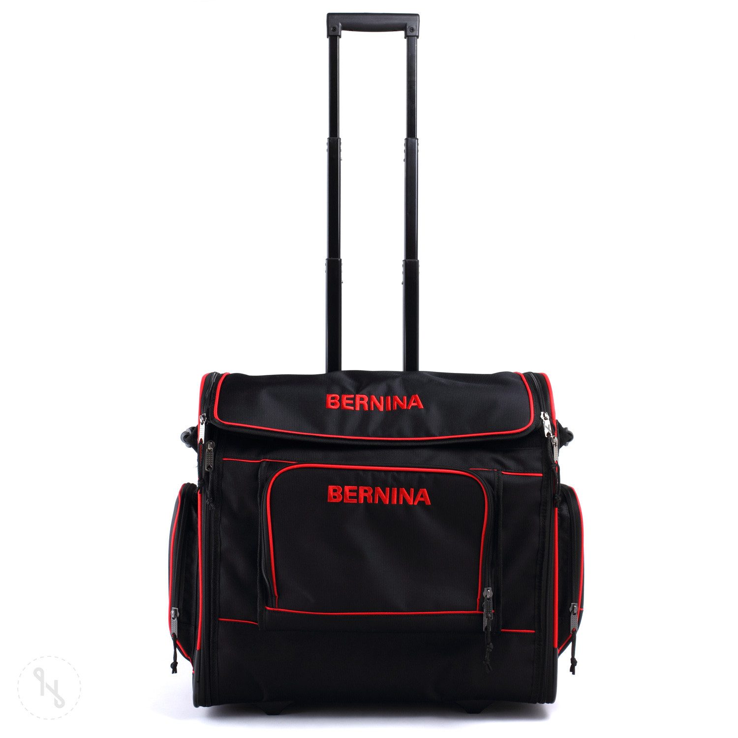 Der Bernina L-Trolley ist sehr stabil und perfekt geeignet für unterwegs. In den vielen Innen- und Aussenfächern findet sich ausserdem reichlich Platz für Zubehöre. Dank der robusten Rollen und des ausziehbaren Teleskophandgriffs können die Nähmaschine und das festgemachte Stickmodul bequem gezogen werden. Auch die seitlichen Tragegriffe ermöglichen eine komfortable Handhabung beim Ein- und Ausladen. Drei zusätzliche Einlagen mit Klettverschluss gewähren einen optimalen Halt beim Transport von kleineren Bernina Nähmaschinen.