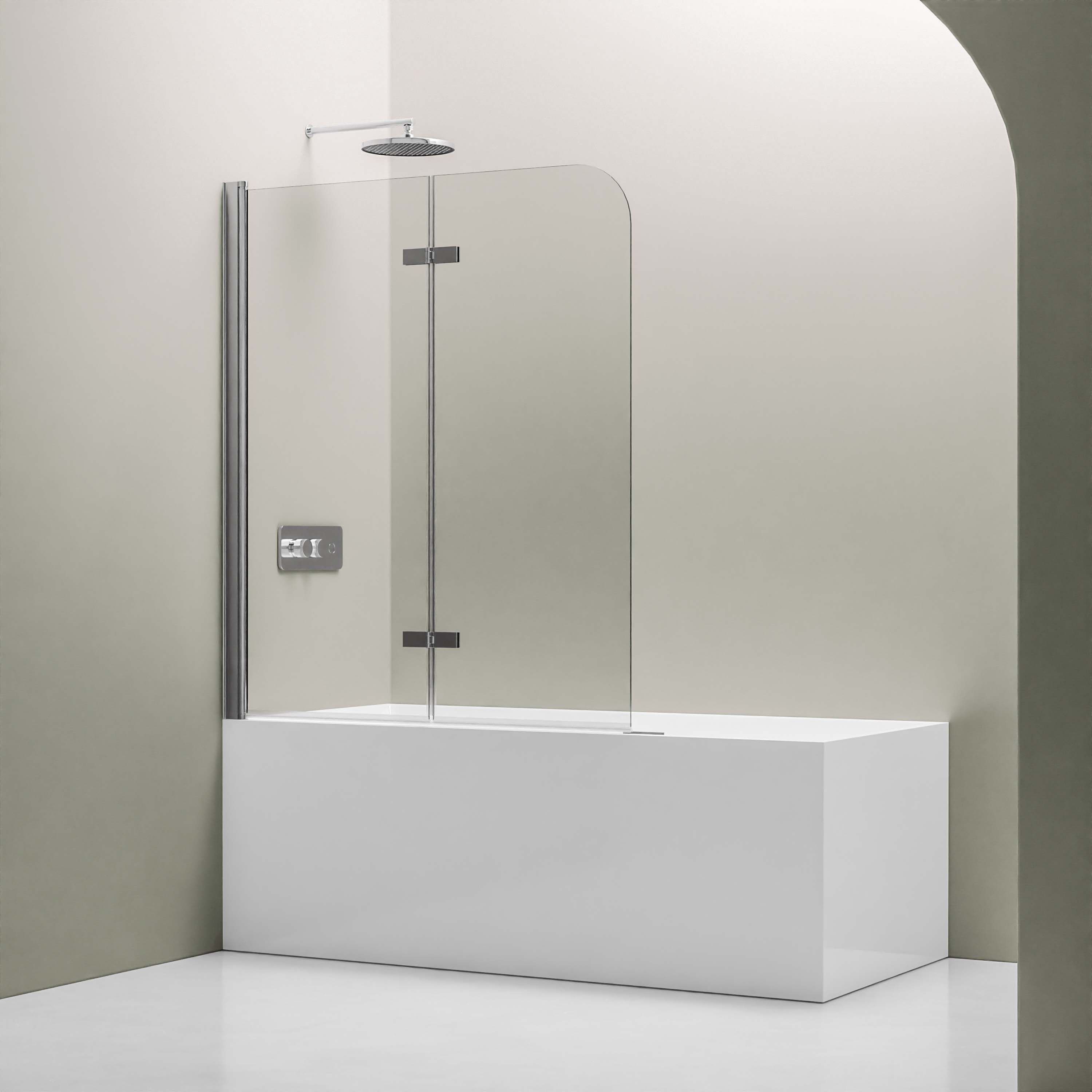 Diese Duschtabtrennung für die Badewanne ist aus 6 mm starkem ESG-Echtglas. Das Alu-Seitenprofil ist dezent, erlaubt aber trotzdem einen Ausgleich von Wandunebenheiten von bis zu 20 mm.