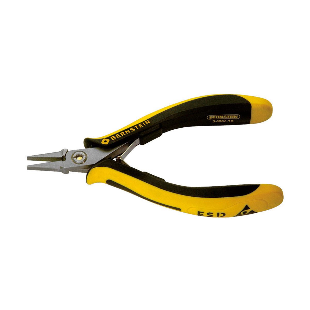 Sehr schlanke Flachzange mit kurzen glatten Backen zum präzisen Greifen, Halten und Fixieren von Drähten, Baugruppen und Komponenten sowie alle möglichen Kleinteile.