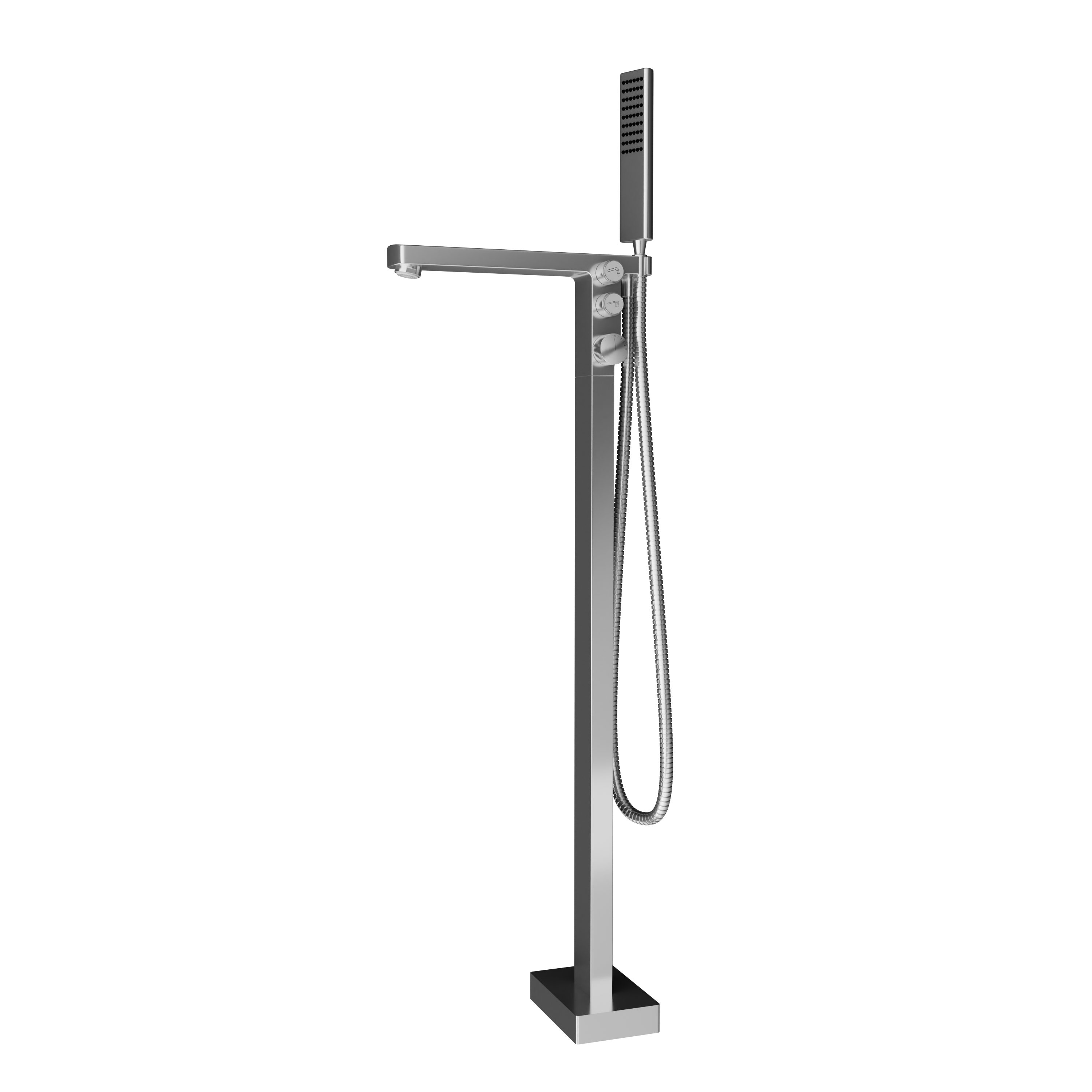 Standarmatur freistehend NT7562 - Wannenarmatur in diversen Farben wählbar Eine Standarmatur ist aus einem modernen Badezimmer nicht mehr wegzudenken. In Kombination mit einer freistehenden Badewanne ergibt dies ein ganz besonderer Eyecatcher. Die Armatur NT7562 ist in zwei Farben wählbar. Der Brauseschlauch ist aus hochwertigem Edelstahl gefertigt. Die ABS-Handbrause ist mit Silikonnoppen ausgestattet, bei denen Sie schnell und einfach Kalkablagerungen entfernen können. Die Wahl der Verbraucher erfolgt durch einfachen Knopfdruck. Dank ausgefeilter Technik erhitzt sich der Armaturenkörper nicht, sodass ein Verbrennen verhindert wird. Spezifikationen Material Messing, Edelstahl; Handbrause ABS Farbe wählbar: Chrom, Schwarz matt Arbeitsbereich von 0,5 bar bis 8 bar, bei max. 90° C Maße Höhe: ca. 95 cm Впередe Maße siehe Zeichnung Gewicht 8,6 kg Впередe Details Progressive Keramik-Kartusche 35 mm, austauschbar Cool-Body-Funktion: kein Verbrennen an Armatur Neoperl Strahlregler Handbrause aus ABS mit Anti-Kalk-Noppen Brauseschlauch 1,5 m aus Edelstahl Auswahltasten für Wanneneinlauf und Handbrause Einstellschrauben zum Justieren bei Bodenunebenheiten DIN-Anschlüsse Einfache Montage