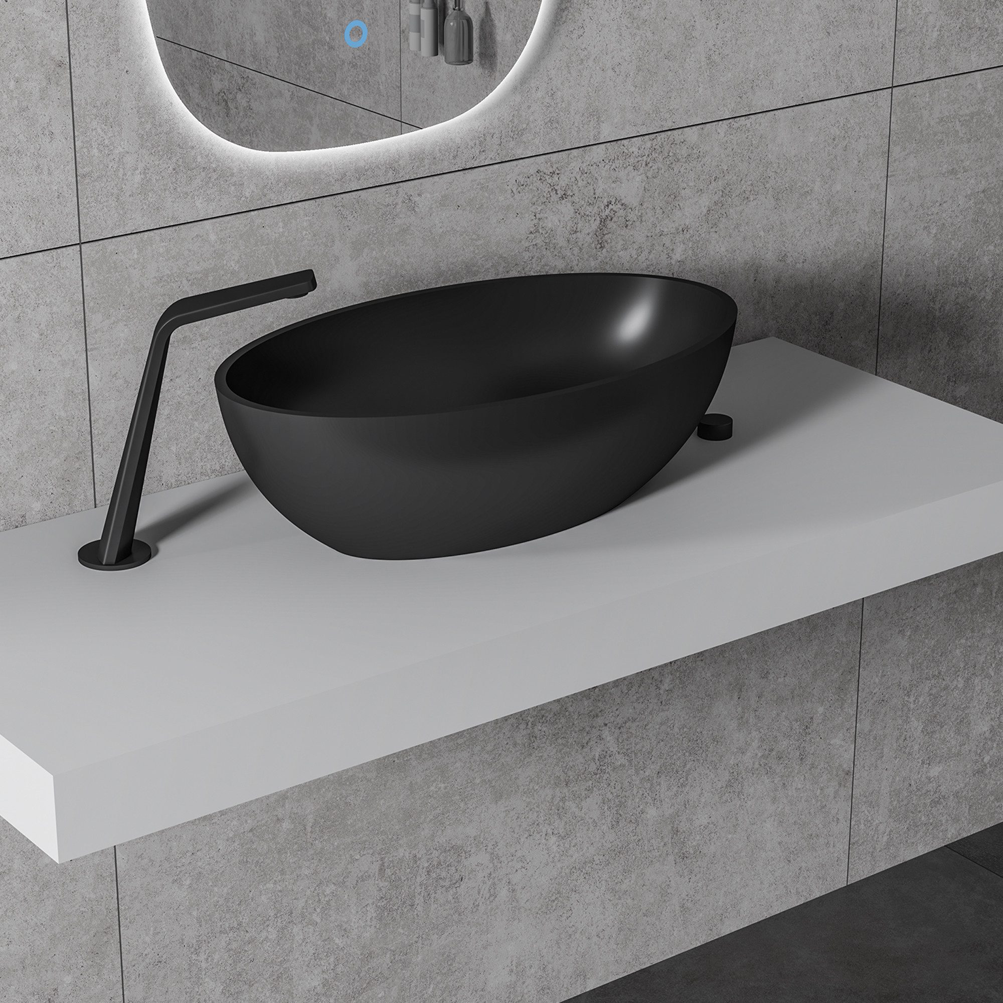 • Aufsatzwaschbecken aus hochwertigem Mineralguss / Glatte und porenfreie Oberfläche