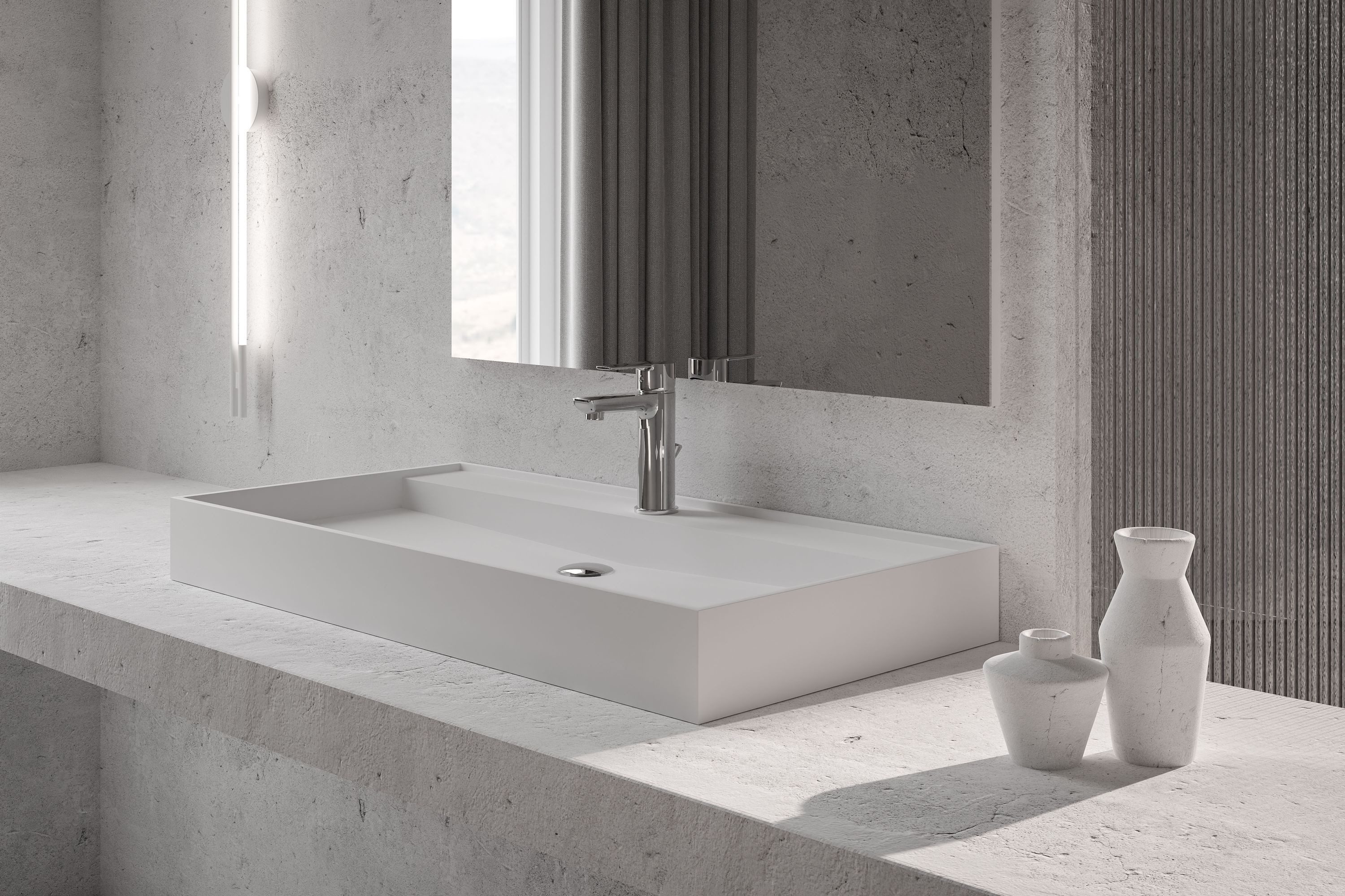 aus Mineralguss - 90 x 45 x 11 cm - Weiß matt