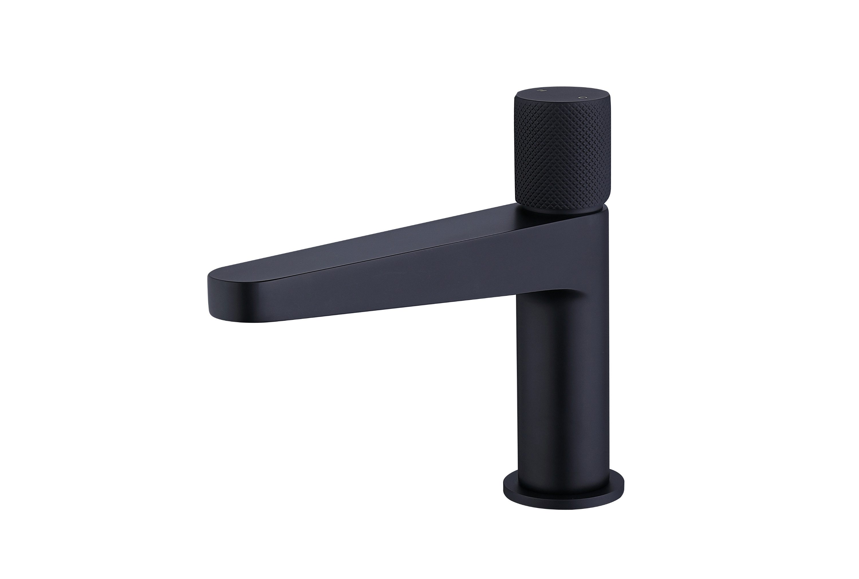 Ausstattung | aus hochwertigem Messingkern Design-Drehgriff mit rutschhemmender Oberfläche Langlebige Keramik-Kartusche Neoperl Geräuscharm Inkl. flex. Anschlussschläuche |