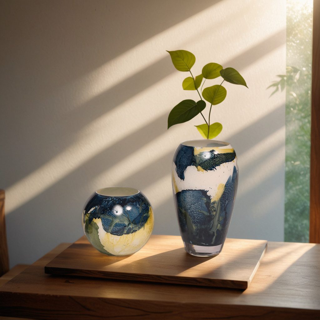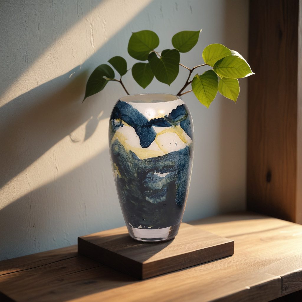 Erleben Sie die Schönheit der skandinavischen Natur in Form einer exklusiven Vase, inspiriert von den Wäldern Skandinaviens. Diese Vase kombiniert minimalistisches Design mit hochwertigen Materialien und detailreicher Handarbeit, sodass jedes Stück ein unverwechselbares Unikat darstellt. Die Farbverläufe, die an schimmernden Schnee, Pflanzen und sanfte Sonnenstrahlen erinnern, verleihen jeder Vase eine besondere, harmonische Ausstrahlung.