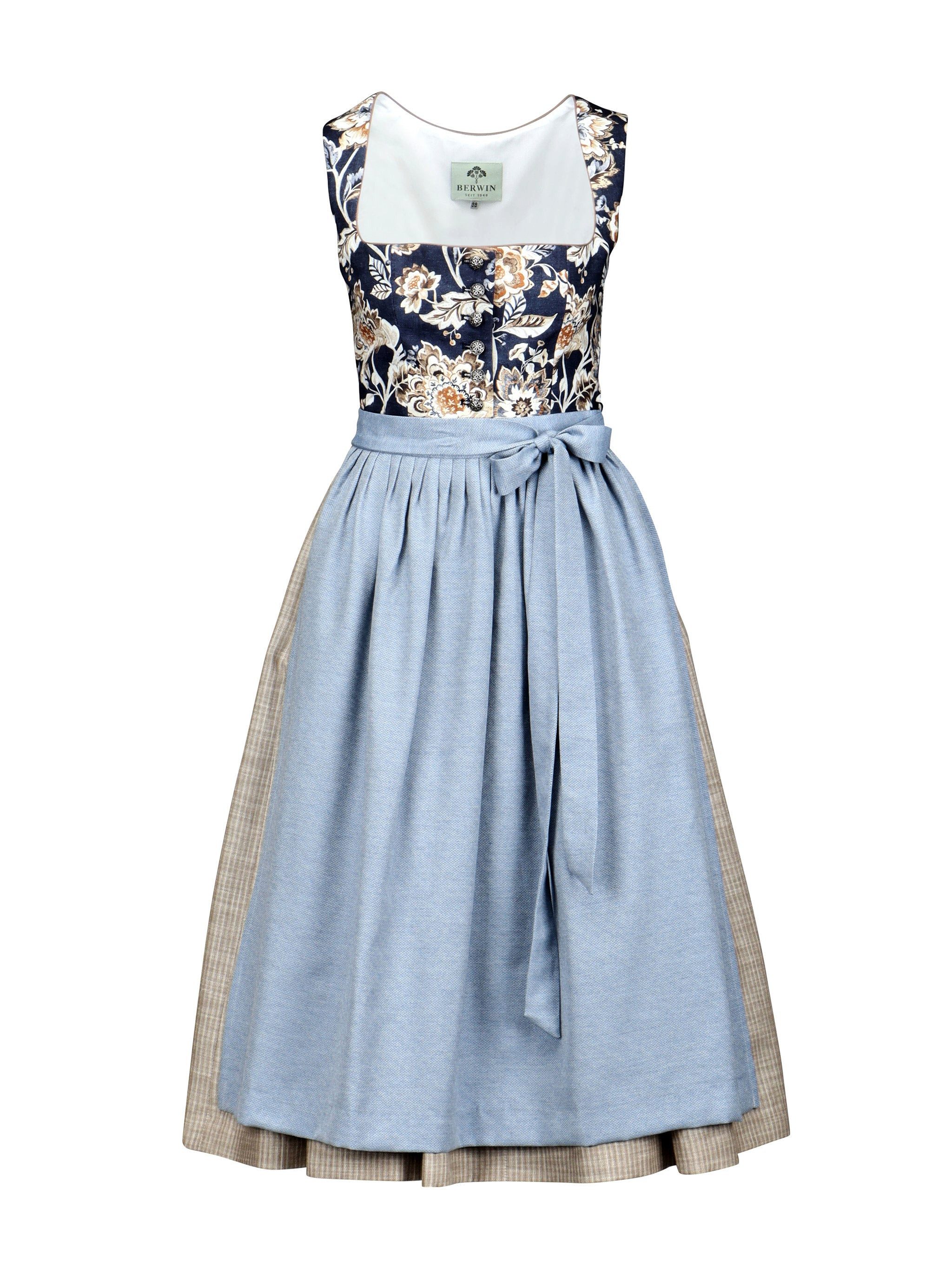 Materialzusammensetzung | Rock: 100% Baumwolle Oberteil: 100% Baumwolle Futter: 80% Polyester 20% Baumwolle Schürze: 58% Baumwolle 42% Polyester |