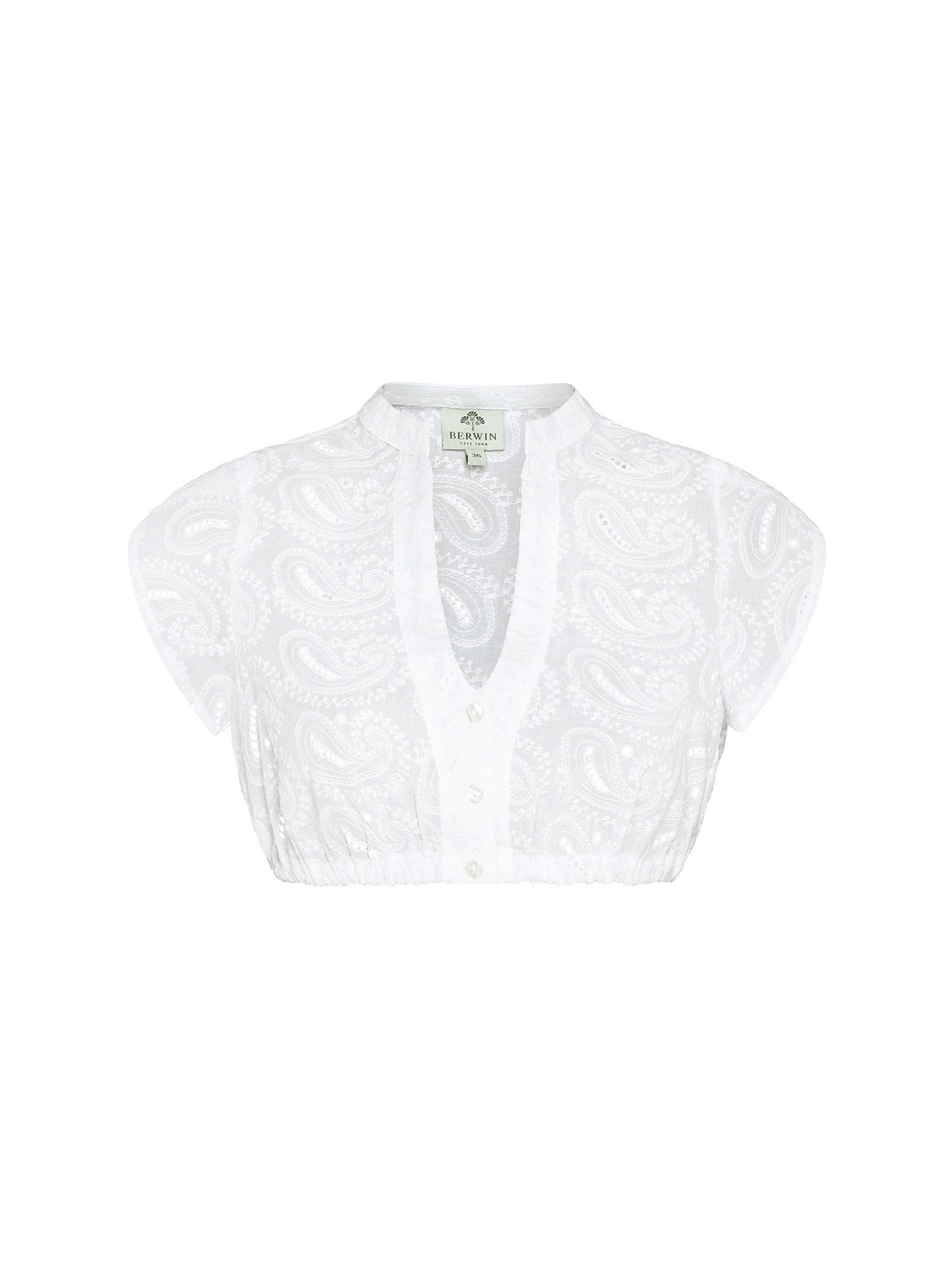 Charmante Dirndlbluse aus hochwertiger Baumwolle mit Blümchen-Lochmuster