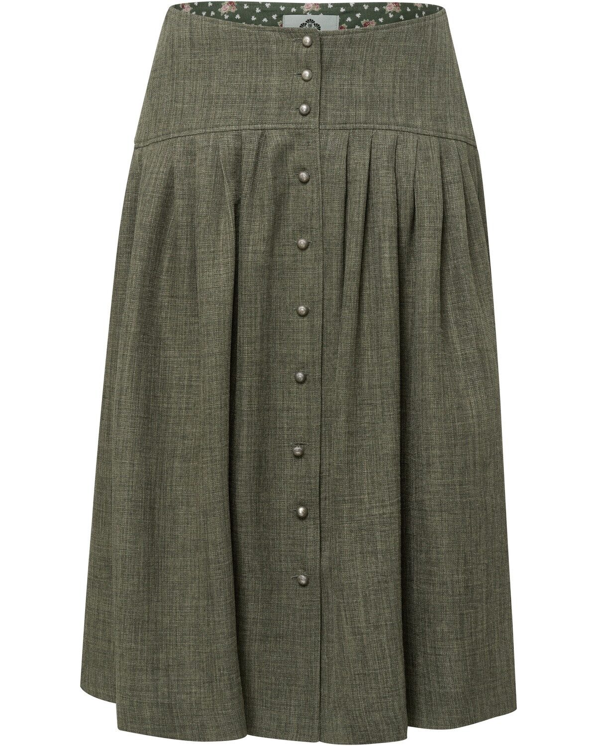 Der sommerliche Passenrock von Berwin überzeugt durch seinen leichten und fließenden Stoff, der ein angenehmes Tragegefühl an warmen Tagen garantiert. Der weiche Stoff sorgt nicht nur für hohen Komfort, sondern schafft auch eine luftige Atmosphäre, die ideal für sonnige Ausflüge oder entspannte Tage im Freien ist. Die kleinen Falten im Rockteil verleihen dem Design eine verspielte Note, während sie gleichzeitig eine elegante Silhouette formen, die die feminine Figur gekonnt in Szene setzt. Ein weiteres Highlight dieses Rocks ist die durchgehende Knopfleiste, die nicht nur das Anziehen erleichtert, sondern auch die Möglichkeit bietet, den Sitz individuell anzupassen. Diese praktische Funktion sorgt dafür, dass der Rock immer perfekt sitzt und sich den Bewegungen anpasst, was ihn zu einem idealen Begleiter für verschiedene Anlässe macht. Zudem ist der Rock ungefüttert und knitterfrei, was ihn besonders pflegeleicht und alltagstauglich macht. Mit einer Длина von 75 cm bietet der Passenrock eine schmeichelhafte Passform, die vielseitige Kombinationsmöglichkeiten eröffnet. Ob lässig mit einem T-Shirt und Sandalen oder elegant mit einer Bluse und Pumps – dieser Rock lässt sich mühelos in jede Garderobe integrieren und ist somit eine stilvolle Wahl für jede modebewusste Frau, die Wert auf Komfort und Eleganz legt. Oberstoff: 100% Polyester; Sonstige Materialien: 100% Baumwolle (Kontrast)