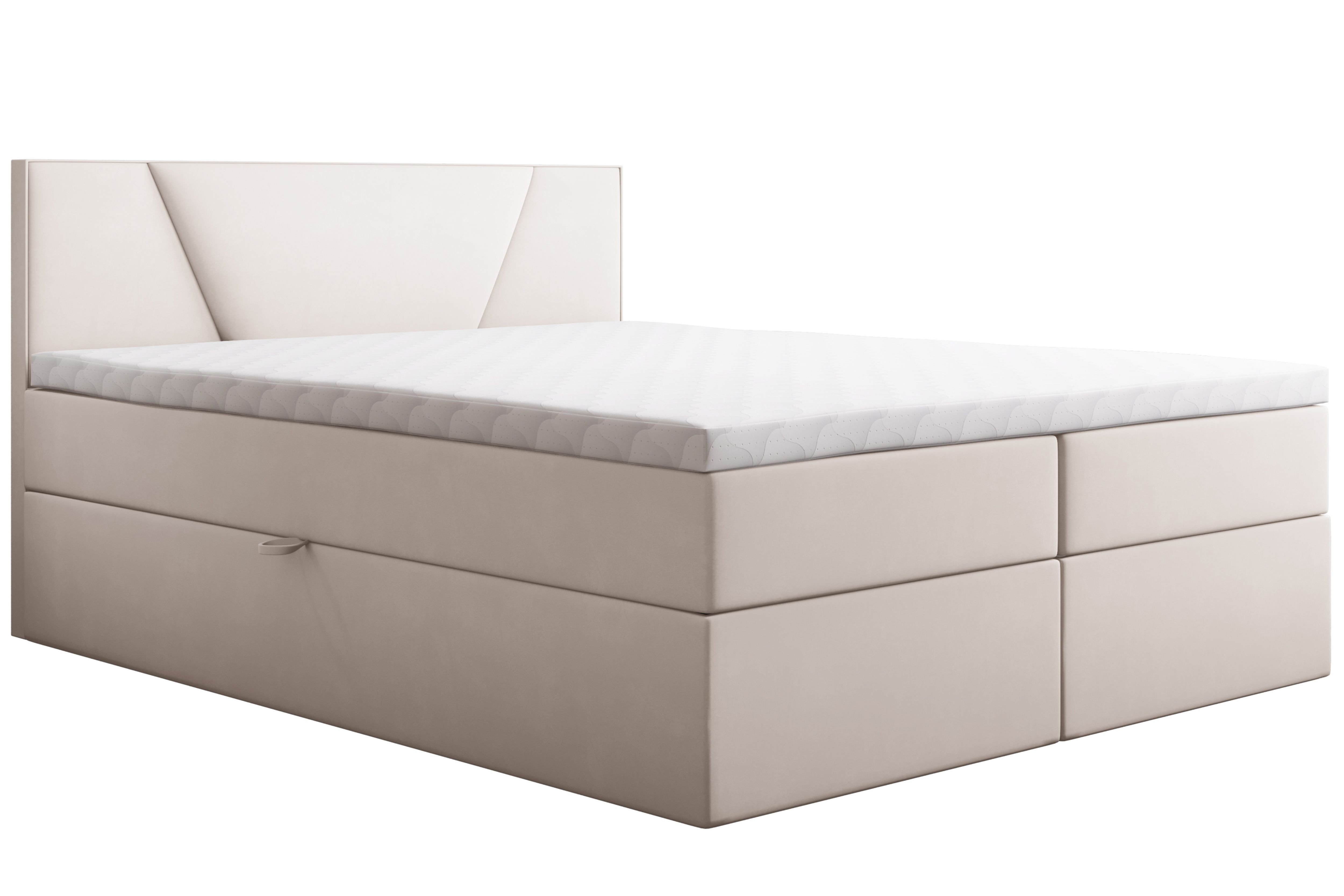 Zwei großzügige Seitlich aufklappbare Bettkästen bieten reichlich Stauraum für Bettwäsche, Kissen oder persönliche Gegenstände – ideal, um Ordnung im Schlafzimmer zu halten. Der integrierte Stauraum ist nicht nur praktisch, sondern auch diskret und platzsparend.