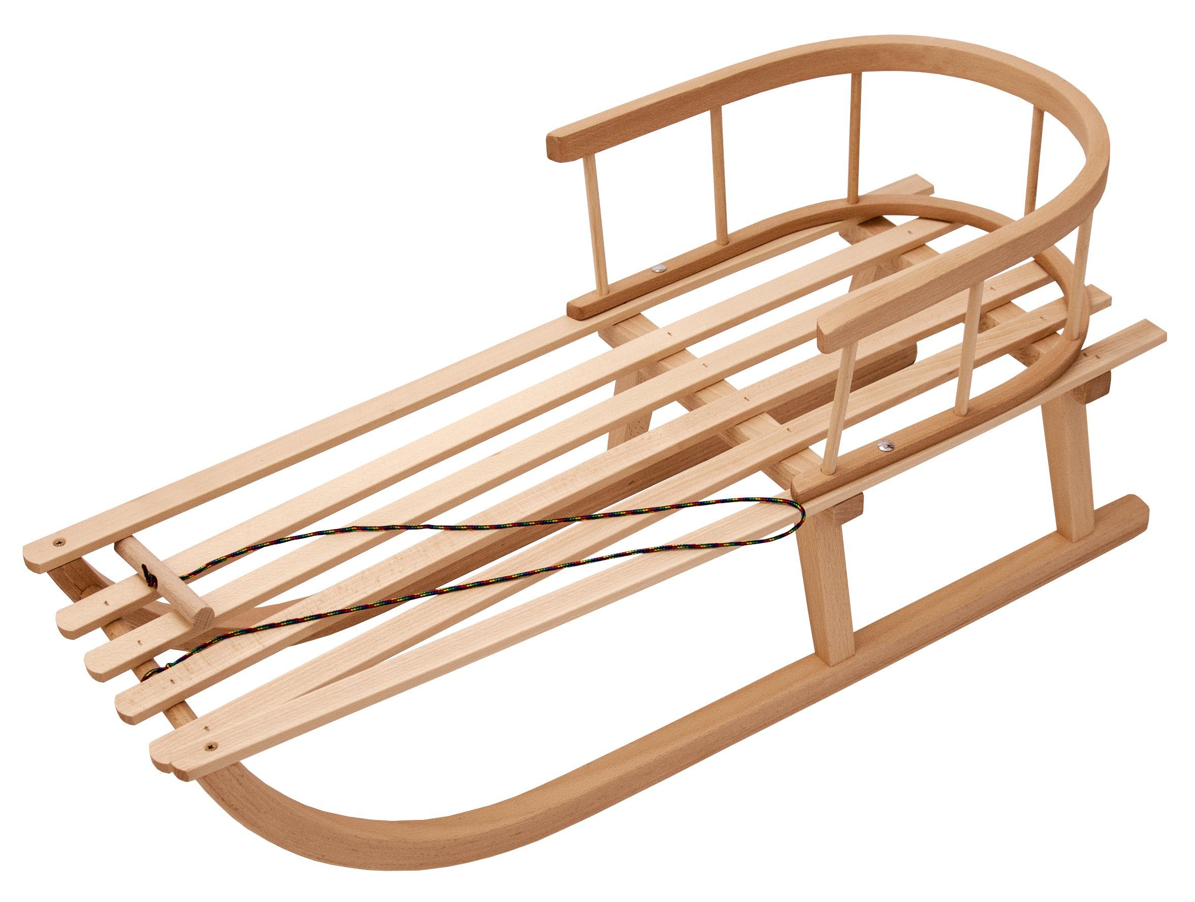 Die Rückenlehne kann jederzeit entfernt werden, was den Einsatz von Schlitten älteren Kindern ermöglicht. Die Läufer sind mit einem dicken Blech verzinkt, was für eine reibungslose Fahrt, unabhängig von der Oberfläche sorgt. Zusätzlich haben sie eine bunte Schnur, die mit einem Holzgriff beendet ist. Das Ganze ist mit demumweltfreundlichen Klarlack lackiert, der das Sicherheits-Zertifikat hat.