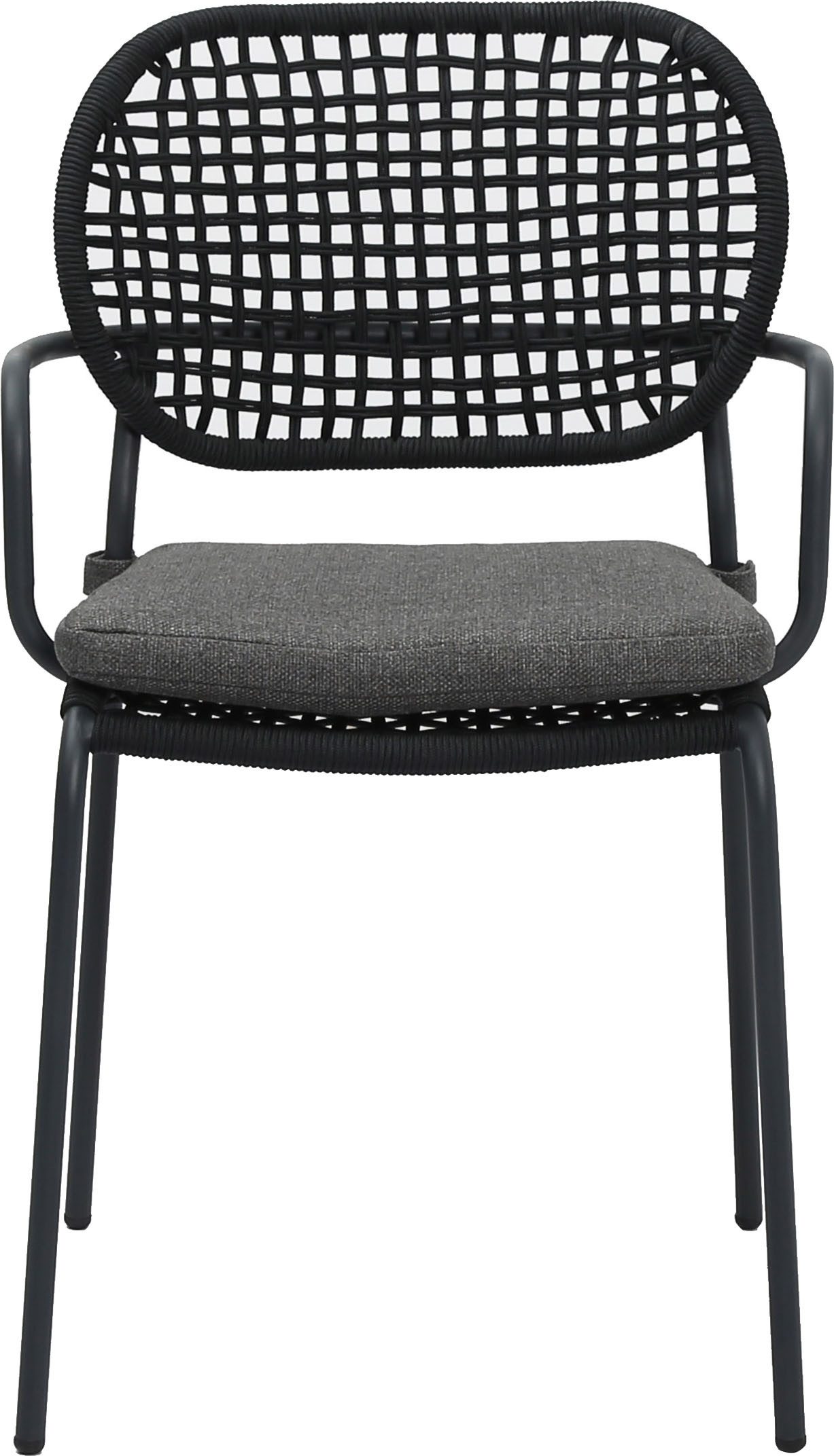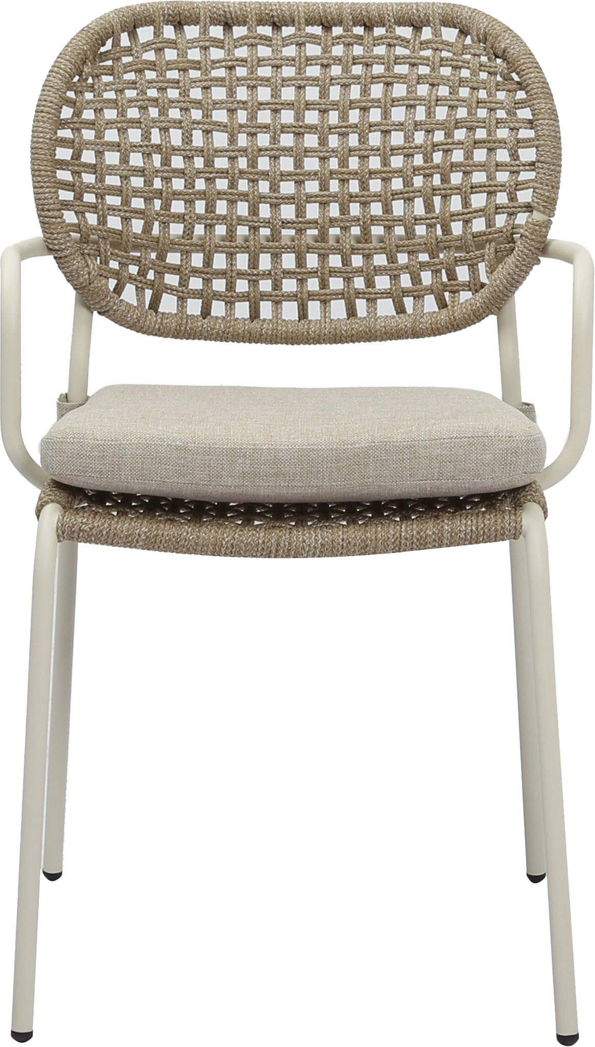 Der Stuhl Reino besticht durch ein schlankes, modernes Design mit einem leichten Stahlrahmen und einer Sitzfläche und Rückenlehne aus Rope. Mit seinem minimalistischen Look ist dieser stapelbare Dining-Sessel ideal für den Außenbereich, ganz gleich ob Terrasse oder Garten. Seine langlebige Konstruktion garantiert eine lange Lebensdauer und Pflegeleichtigkeit.
