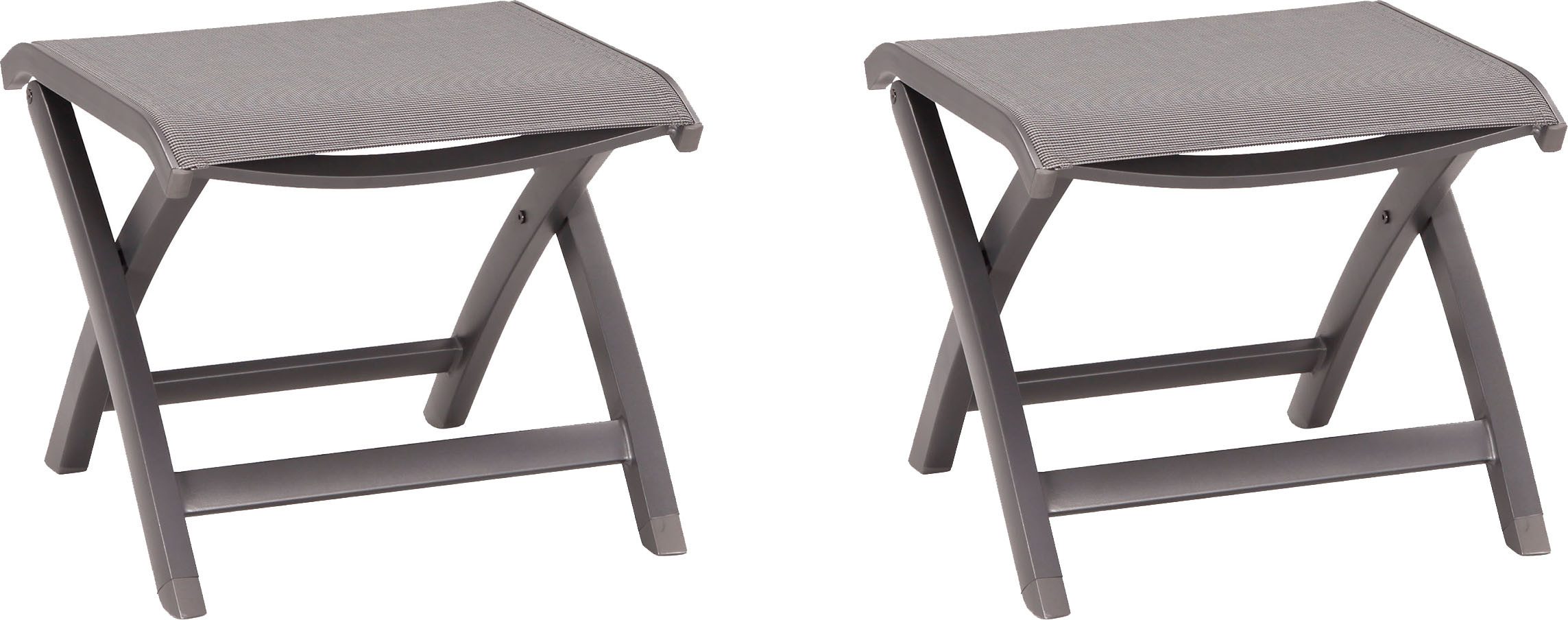 Das Gestell, einschließlich der Gelenke, ist vollständig aus Aluminium gefertigt. Dadurch ist der Hocker absolut korrosions- und witterungsbeständig sowie einfach im Handling. Die Bespannung ist aus reißfestem und atmungsaktivem Textilene-Gewebe. Für ein einzigartiges Design und komfortablen Sitzkomfort. Der Hocker eignet sich als Hocker, Fußbank oder Beistelltisch. Maße: Gesamtmaß BxTxH: 48x48x43 cm / Sitzfläche BxT: 48x48 cm / Sitzhöhe: 43 cm