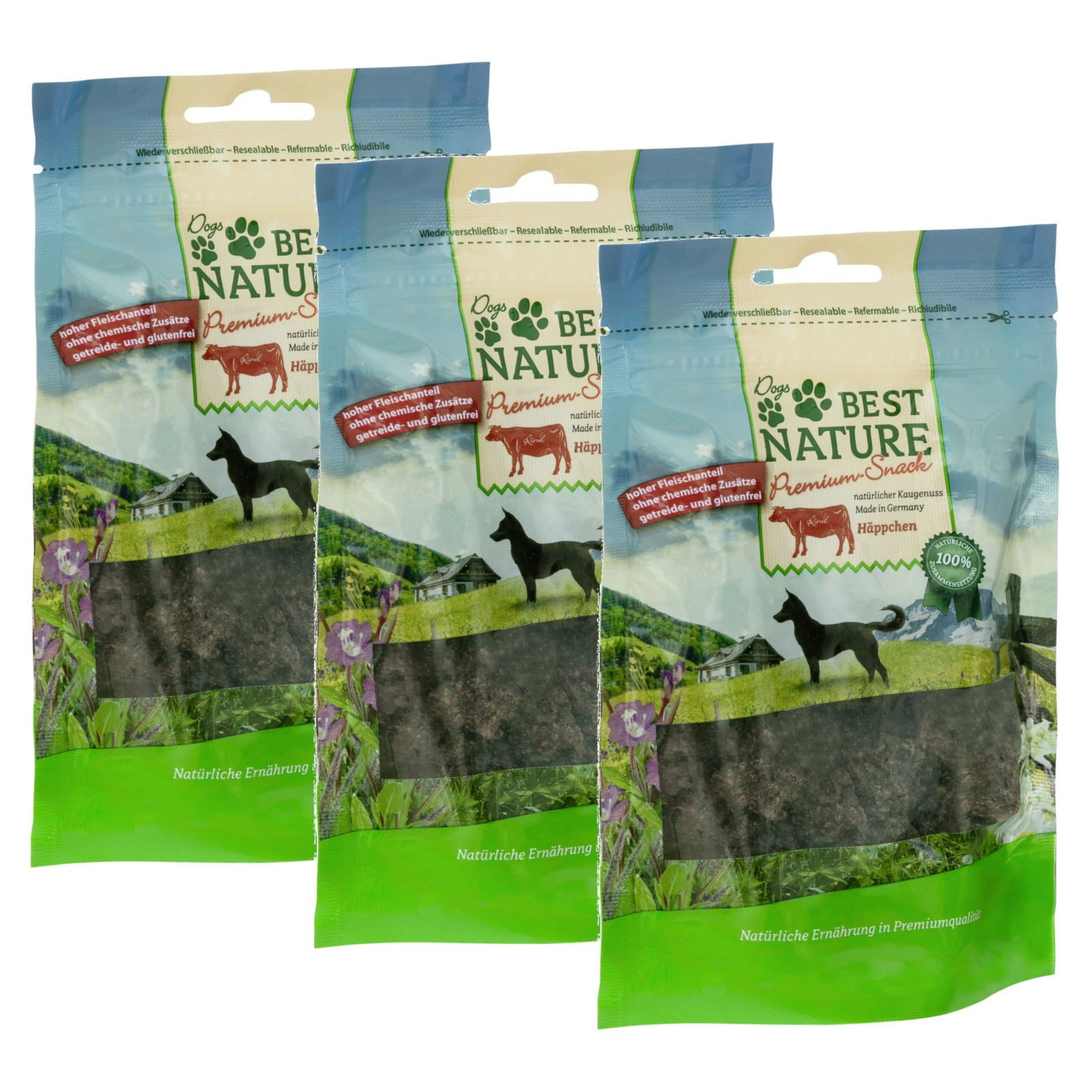 Dogs Best Nature Häppchen haben einen sehr hohen Fleischanteil von 96%. Durch das schonende Lufttrocknungsverfahren wird der Erhalt wertvoller Nährstoffe gewährleistet. Die Häppchen sind frei von Getreide, Gluten und Zucker sowie ohne künstliche Aromen, Farbstoffe und Konservierungsmittel.