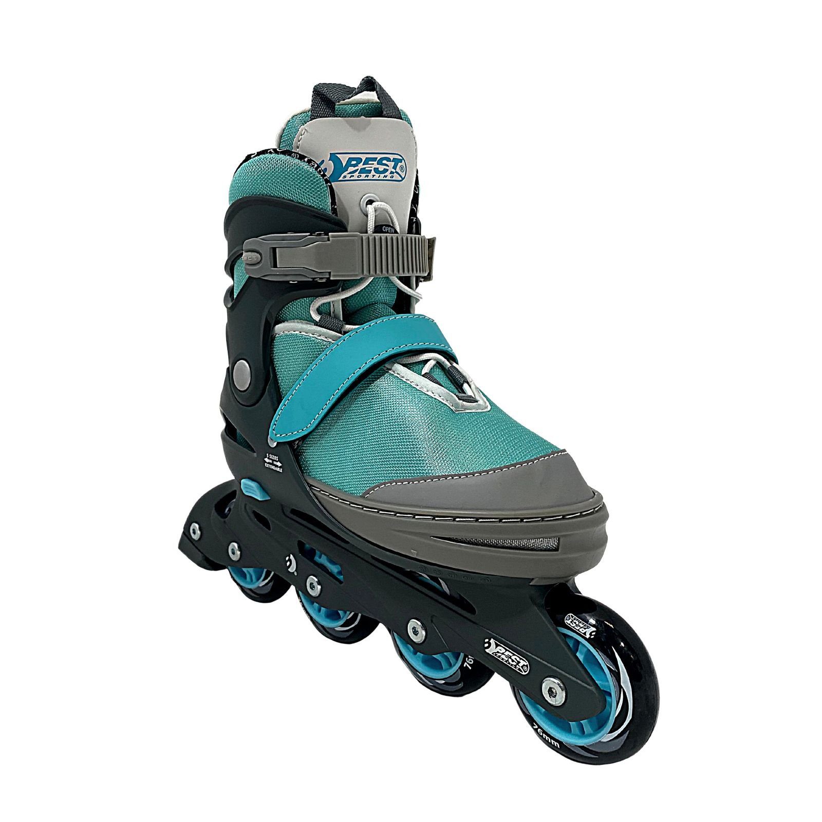 Die hochwertigen, atmungsaktiven Inline-Skates lassen sich mit einem Knopfdruck in vier Schuh-Größen anpassen. Dadurch sind die Inliner individuell verstellbar und lange nutzbar, da sie quasi mitwachsen. Das robuste Gestell aus verstärktem, schlagfesten Kunststoff und Semi Softboots bietet einen sehr hohen Tragekomfort und sicheren Halt für den Fuß. 3-Fach Sicherheit: Verstellbare Verschluss-Schnalle mit 1-Hand-Mechanik, Powerstrap mit Klettverschluss und Quick Lace Schnellschnürsystem sorgen für leichten Einstieg und einen hervorragenden Halt. Einstieg und Ausstieg werden enorm erleichtert durch die beiden Schlaufen an Ferse und Schutzlasche. Das atmungsaktive Innenfutter ist mit farbigem Stoff ausgekleidet und hat eine Polsterung aus hochwertigem Memory-Foam. Dies garantiert einen unvergleichlich bequemen Sitz der Inline Skates am Fuß! Das feste und dennoch flexible Außengewebe gibt dem Fuß Schutz und Halt zugleich, während es atmungsaktiv und schnell trocknend ist.