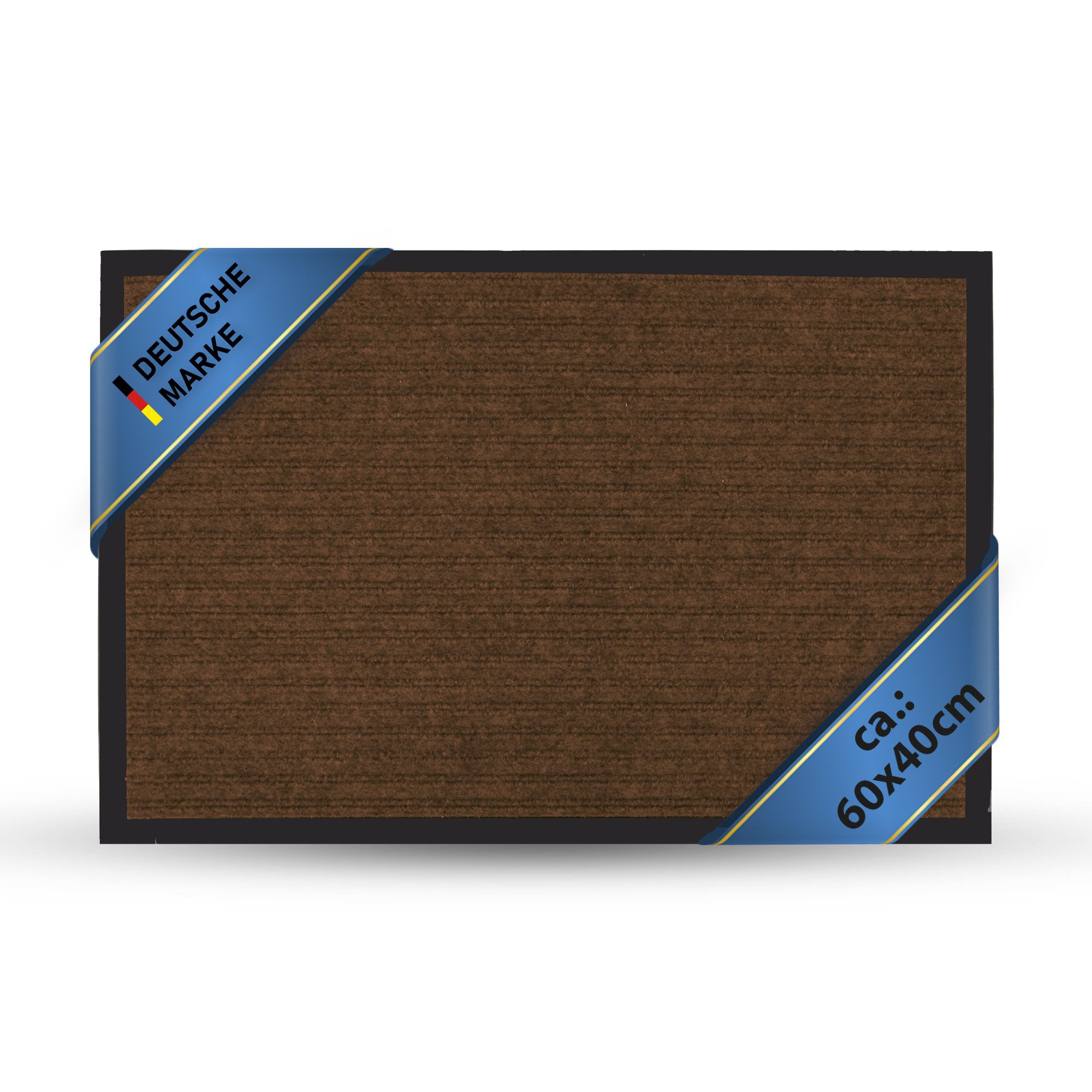 Produktart: Schmutzfangmatte / Fußmatte / Türmatte Maße: ca. 40 x 60 cm Gewicht: ca. 600 g Material (Oberfläche): 100 % Polyester Material (Unterseite): Rutschfester PVC-Rücken Farbe: je nach Auswahl Schwarz / Rot / Braun / Grau Einsatzbereich: Innen- & Außenbereich (z. B. Haustür, Flur, Balkon, Terrasse, Wohnmobil) Pflegehinweis: Abwaschbar mit Wasser, schnelltrocknend, hygienisch