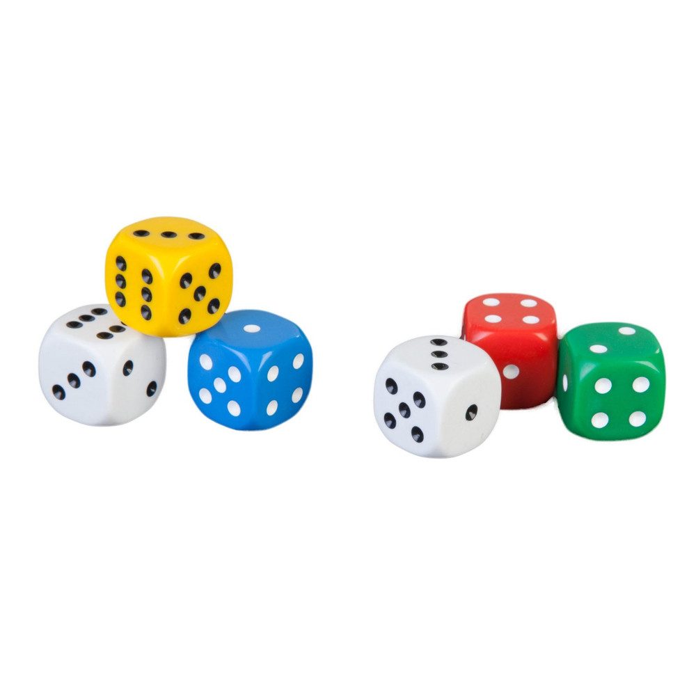 Dieses Würfel-Set von Besttoy enthält 6 bunte Spielwürfel. Sie können z.B als Ersatz für alle möglichen Würfelspiele oder für kniffelige Zaubertricks verwendet werden. Besonders gut sind sie als Ersatz für die separat erhältlichen Spiele Qwixx oder Ligretto geeignet. Da mit diesem Set garantiert immer genug Würfel da sind, ist es auch nicht weiter schlimm, wenn mal einer unter dem Sofa verschwindet. Des Впередen kann jeder Mitspieler seinen ganz persönlichen Würfel wählen, da dieser sich von den anderen in der Farbe unterscheidet. Dadurch ist endloser Spielspaß garantiert. Lieferumfang: 6 Spielwürfel Altersempfehlung: ab 3 Jahre Hersteller: Besttoy Artikel-Nummer: B 21112 Achtung! Nicht geeignet für Kinder unter 3 Jahren. Erstickungsgefahr durch abbrechbare, verschluckbare Kleinteile. Ein Würfel, ein Zug, ein Freudenschrei - so fühlt sich ein richtig guter Spieleabend an. Und mit unseren Familienspielen landet der Spaß direkt auf deinem Tisch.Spielspaß to go: Entdecke Reisespiele & Mitbringspiele, die in jede Tasche passen - ideal für kleine Pausen, lange Fahrten oder spontane Spielrunden.