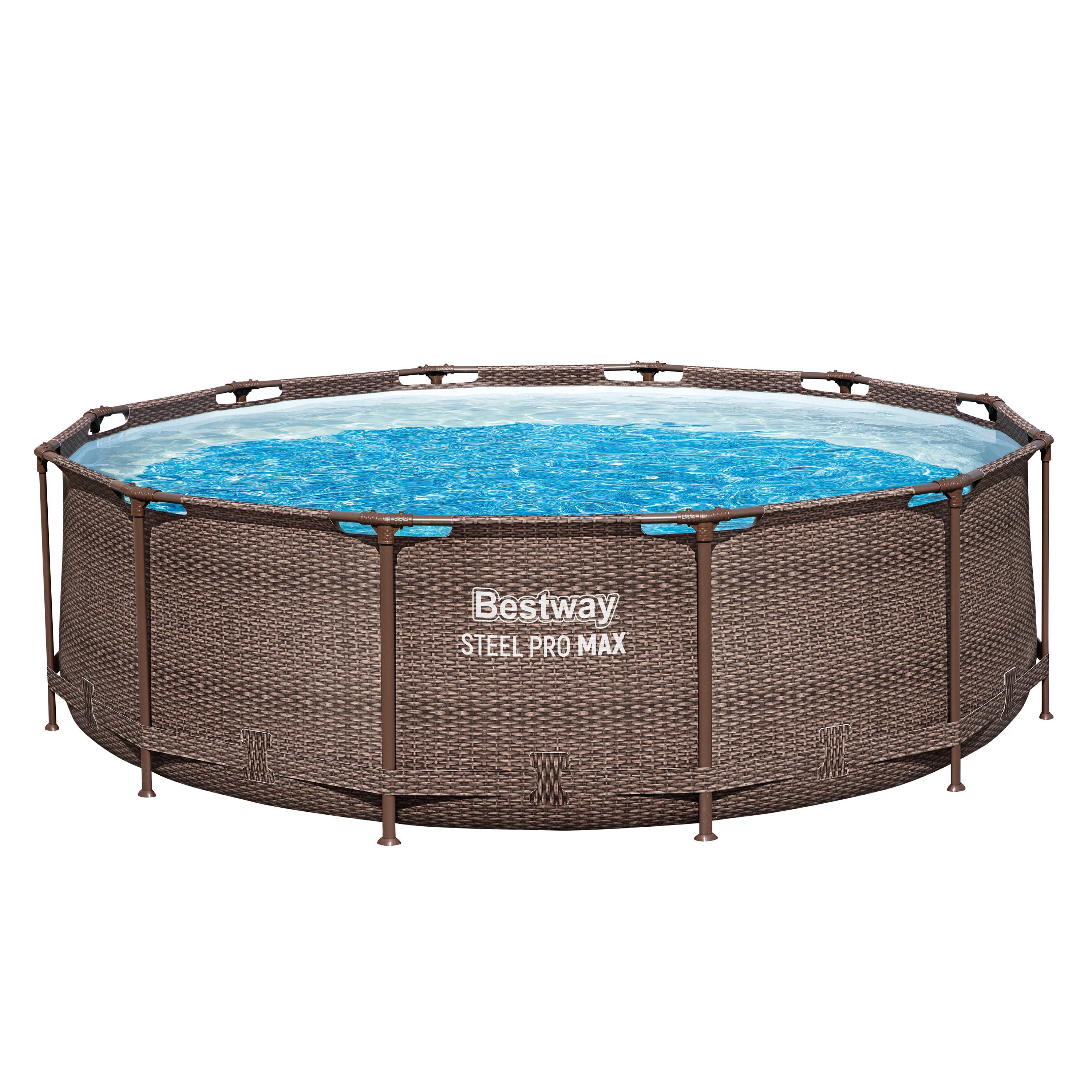 Mit dem Bestway® Steel Pro MAX™ Solo Pool in coolem Rattan-Look holst Du Dir echtes Urlaubsfeeling in den Garten. Der Pool hat einen Durchmesser von 366 cm und eine Höhe von 100 cm – genug Platz für jede Menge Spaß! Mit einer Kapazität von 9.150 Litern wird Dein Garten zu einer echten Wohlfühloase.