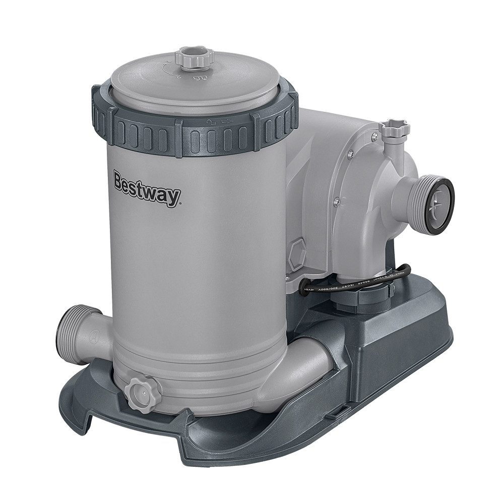 Die 9.463 Liter Filterpumpe von Bestway® ist notwendig, damit Ihr Poolwasser während der Sommermonate sauber und hygienisch rein bleibt. Die Filterpumpe sorgt für Wasserzirkulation, indem sie das Wasser aus dem Pool saugt und durch eine Filterkartusche hindurch zurück in den Pool abgibt. Mit der Pumpe von Bestway® werden zwei Schläuche mitgeliefert, die an zwei unterschiedlichen Punkten des Pools angebracht werden.