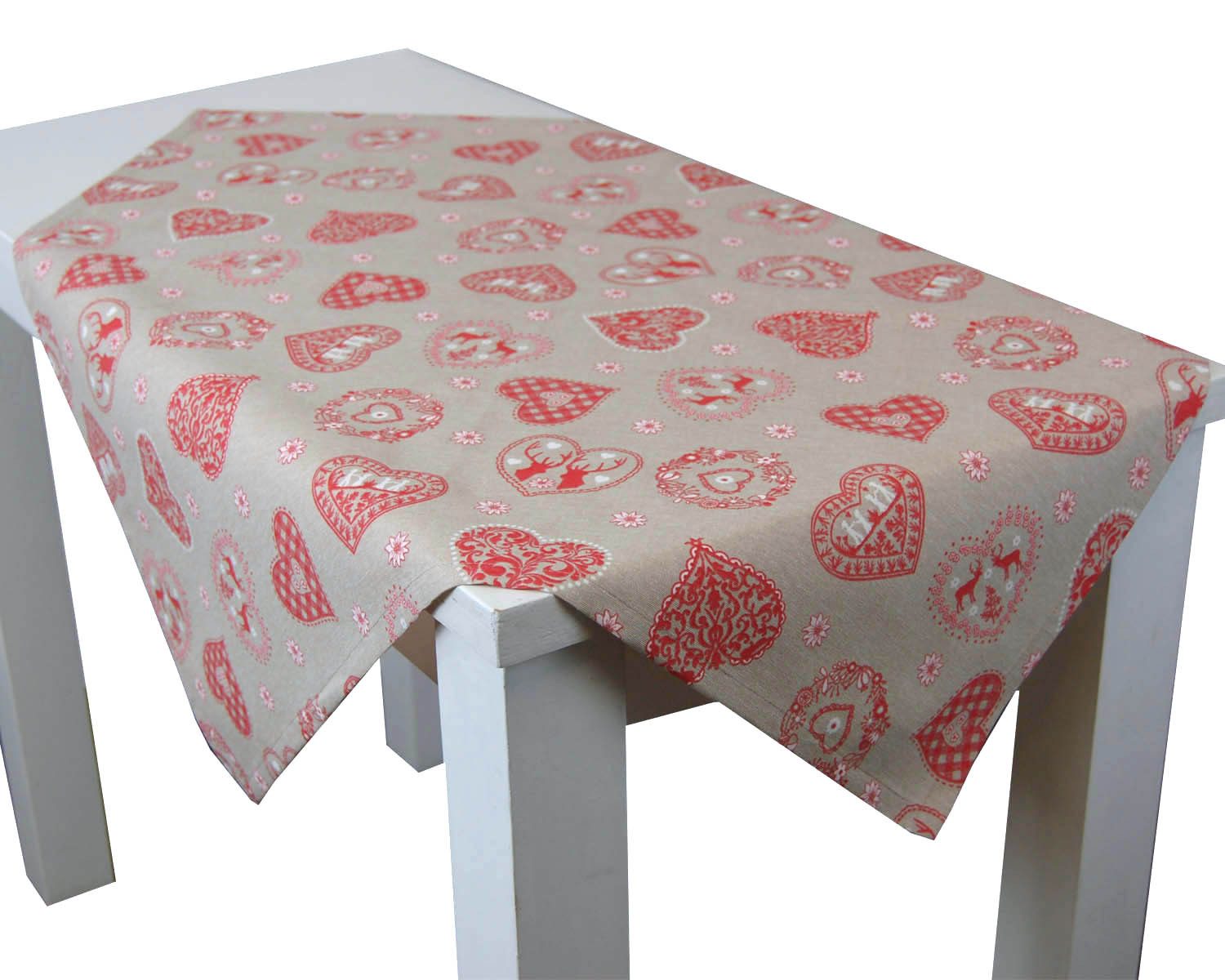 beties Alpen Hütte - ein herrlich verspielt-charmantes Design mit Hütten-Flair. Alpen-chic in Rot-Beige. Herzen, Edelweiß, Hirsch und Wald - mehr benötigt es nicht und wir befinden uns gedanklich schon in den Bergen, auf der Alm oder am Gipfelkreuz. Ein wunderschönes Motiv, das gemütliche Berg Atmosphäre verbreitet. Im Sommer, bei Kaiser-Wetter auf der Terrasse oder im Winter, drinnen bei knisterndem Kaminfeuer - dieses Dekor passt immer. Es versprüht eine ungeheure romantische, wohlige Stimmung. Die einfach gehaltene Farbauswahl in Rot und Beige macht den Kaiser-Jodler zu einem zeitlosen Wohnaccessoire. Diese Heimtex-Serie kann in sämtliche Wohnstile integriert werden - von Chabby-chic über Landhaus bis zur modernen Hochglanz-Wohnwelt. Ein Eyecatcher auf jeder Jagd- oder Skihütte, im Biergarten, Bistro, Gastwirtschaft, Pension oder Hotel - eine Tischwäsche, die ihren Gästen Freude bereiten wird. Nicht zu vergessen ihre Wohlfühloasen zuhause, die Gartenlaube oder der Wintergarten. Mit dem Kaiser-Jodler sind sie zeitlos, trendy, gemütlich!