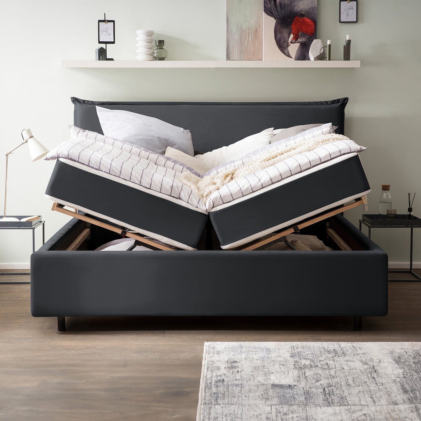 Ausstattung | Stauraum XXL Lattenrost Füße schwarz Bettgestell mit Bettkasten Wendematratze |
