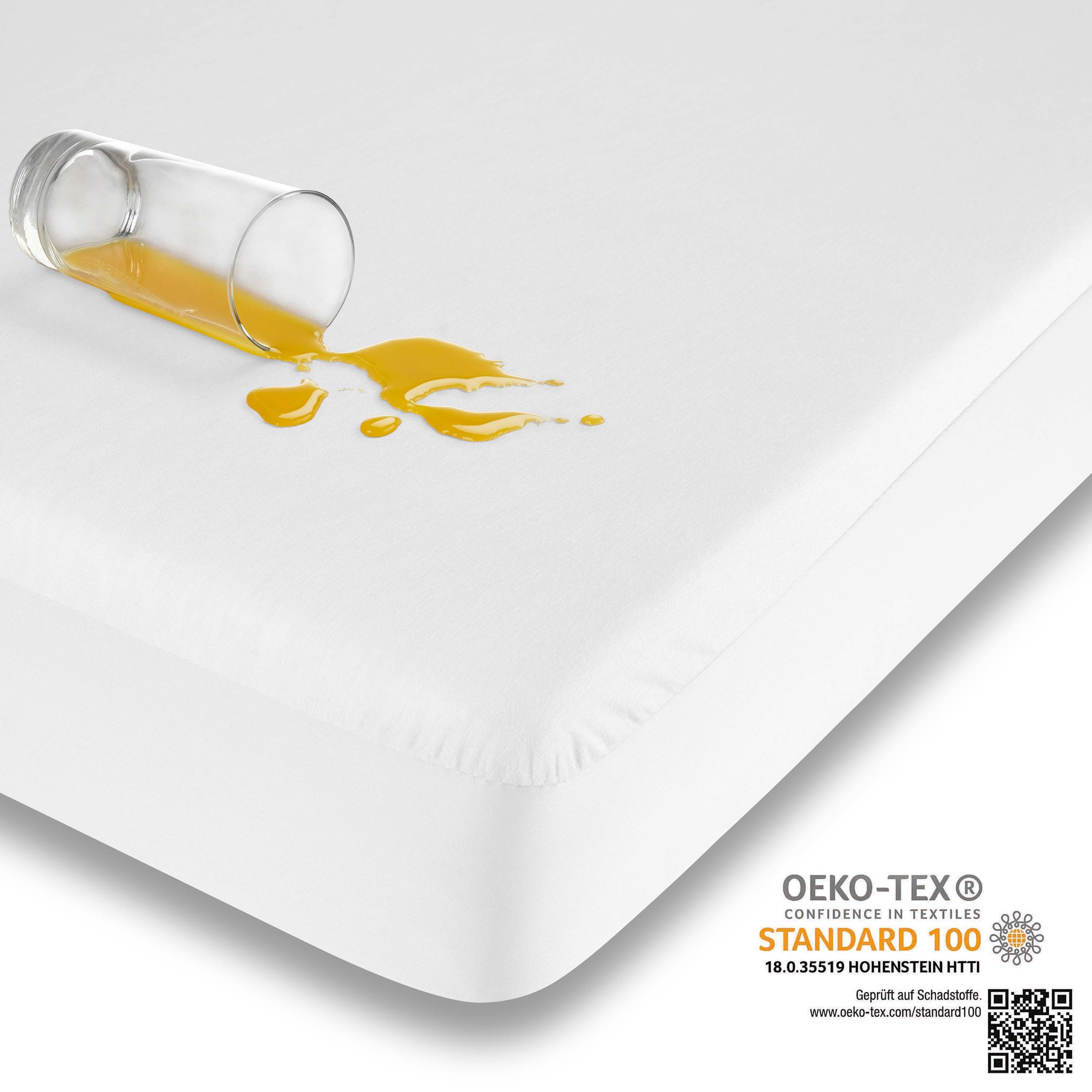 Unser wasserdichtes Spannbetttuch ist die perfekte Lösung für alle, die eine extra Portion Schutz und Komfort benötigen. Es ist aus hochwertigen Materialien gefertigt, die dafür sorgen, dass es flüssigkeitsundurchlässig ist. Egal, ob du nachts schwitzt oder deine Kinder im Bett mal wieder etwas verschütten, dieses Spannbettlaken schützt deine Matratze vor Flecken und Feuchtigkeit. So kannst du ruhig schlafen und musst dir keine Sorgen um die Sauberkeit deiner Matratze machen.