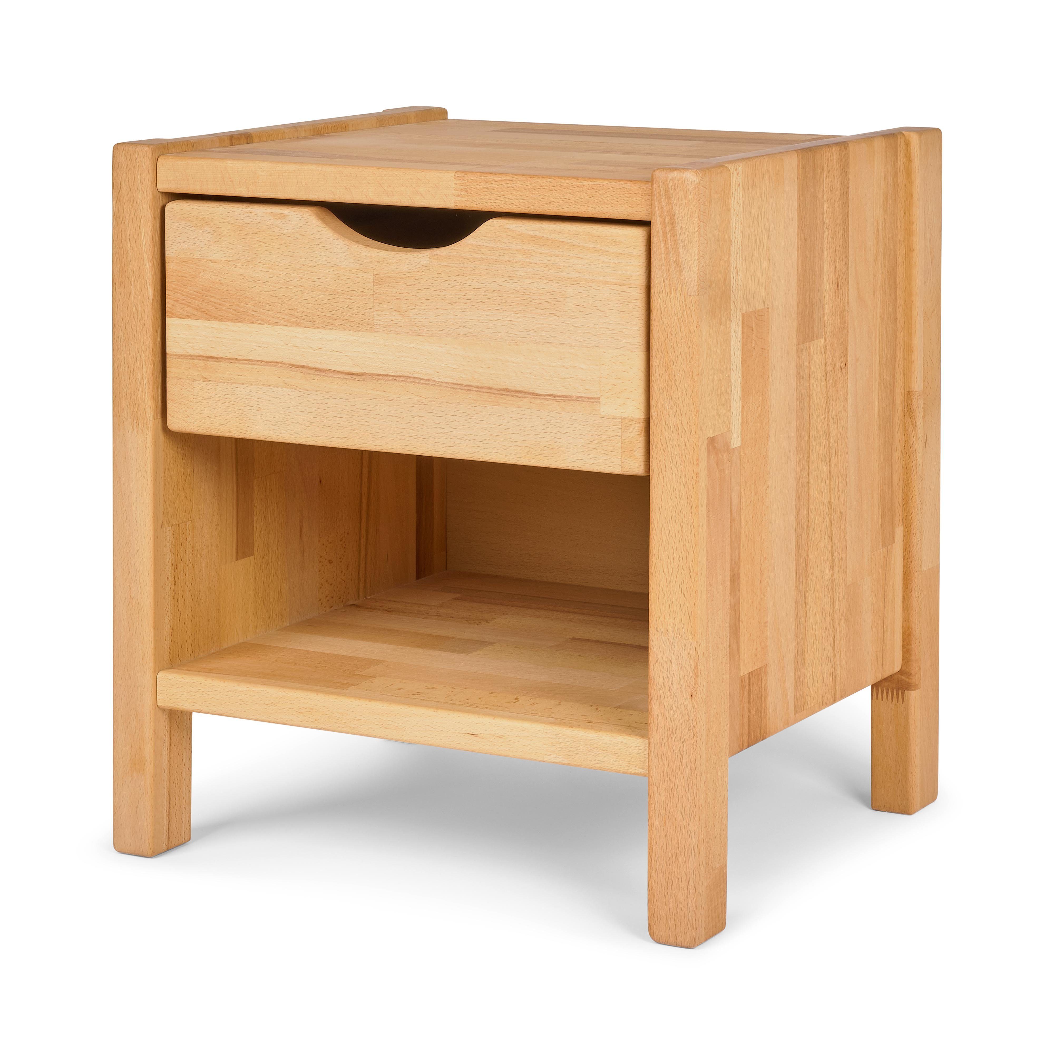 Dieser Nachttisch ist aus massivem Holz gefertigt und bietet dank seiner robusten Konstruktion eine lange Lebensdauer. Mit einer Schublade bietet er ausreichend Stauraum für deine persönlichen Gegenstände und verfügt über eine stabile Oberfläche, auf der du eine Lampe, Bücher oder andere Gegenstände platzieren kannst.