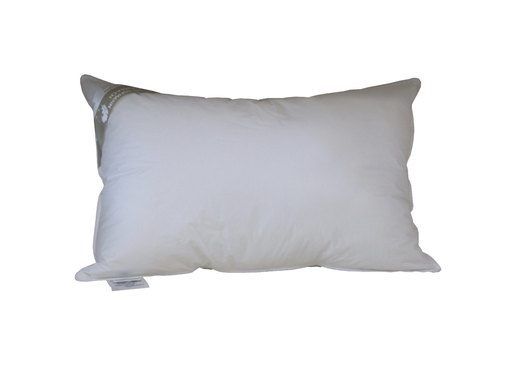 Hofmanns Canada Kopfkissen, 50/75 cm, prall gefüllt, kuschelweich, anschmiegsam und gut stützend. Bezug: Feine Soft-Baumwoll-Einschütte NM 70, 100% Baumwolle, Füllung: 750 g neue can. Federn- und Daunen Klasse 1, 70% Federn, 30% Daunen, Farbe: weiß mit Biese. Wasch- und Pflegehinweise: Waschbar bis 60°C, trocknergeeignet. Gütesiegel und Kennzeichnungen: für Hausstauballergiker geeignet, kein Lebendrupf, eigene Anfertigung. 5082