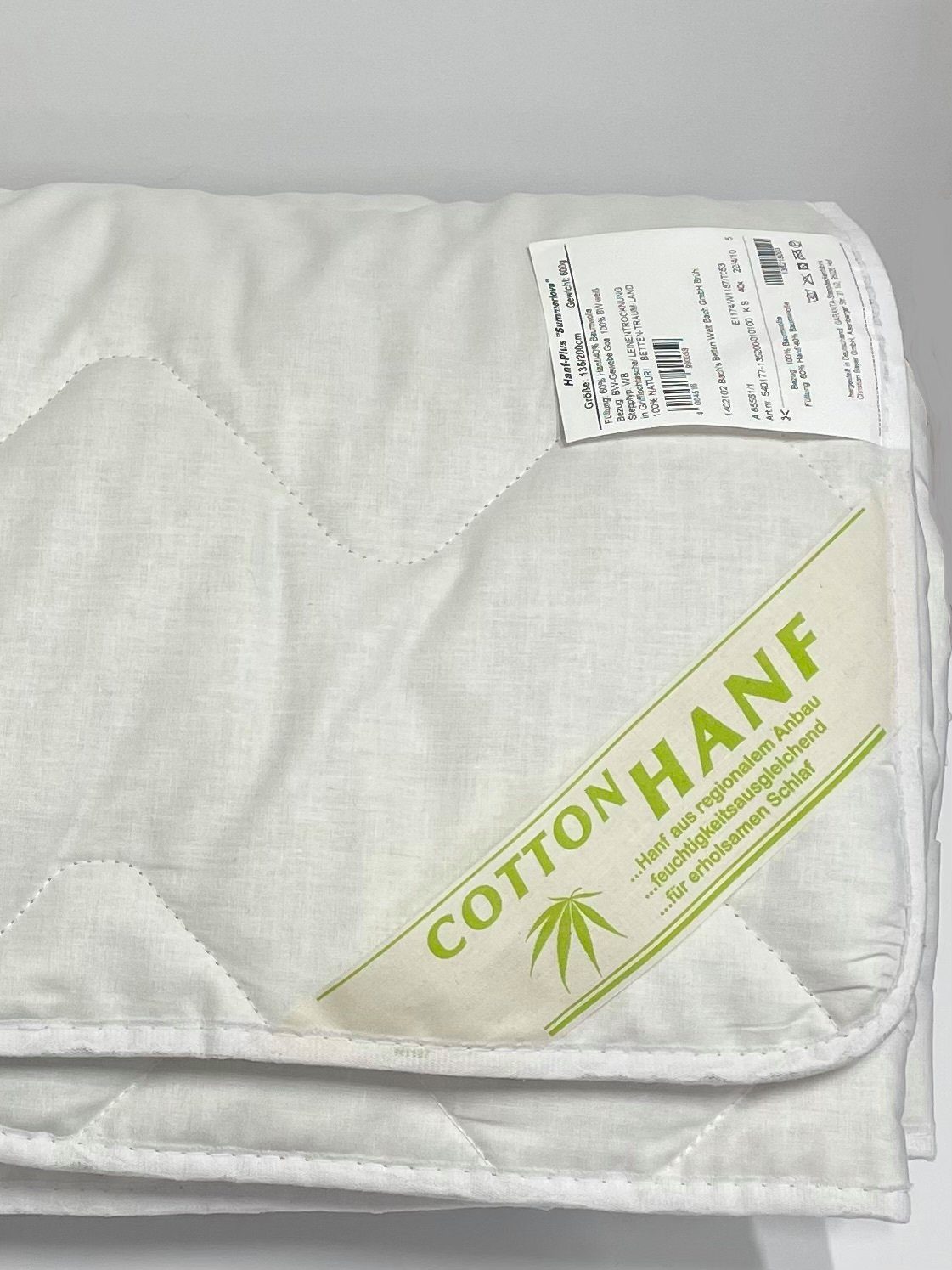 Leichte Sommerdecke Hanf-Plus "Summerlove" die feine Naturbettdecke (Abb. 135x200 cm ) für eine besondere Wohlfühlatmosphäre auch durch die elegante Wellensteppung, in 5 verschiedenen Größen. Meister der Feuchtigkeitsreduzierung: 100% Natur: Die Füllung aus 60% Hanf und 40% Baumwolle ist die optimale Füllung für stark schwitzende Menschen. Die Hanffaser kann viel Feuchtigkeit ins Faserinnere aufnehmen ohne sich nass anzufühlen und gibt die Feuchtigkeit schnell wieder an die Raumluft ab, so dass keine Verdunstungskälte entsteht. Angenehm weich, leicht und besonders hautfreundlich durch den Baumwollbezug. Эко-товар und umweltschonend: Die Fasern sind nachhaltig, umweltschonend, mit einer niedrigen Energiebilanz ausgestattet und entspricht somit dem heutigen Zeitgeist. Die Hanfpflanze wäschst schnell nach, ist extrem schädlingsresistent und antibakteriell. Es müssen weder beim Anbau, Ernte noch bei der Verarbeitung Herbizide oder Pestizide eingesetzt werden. Pflegeleicht: regelmäßiges Lüften reicht in der Regel durch die hohe Selbstreinigungskraft der Naturfasern aus. Die Hanfdecke wurde mit Baumwolle veredelt, um sie noch robuster und bauschiger zu machen. So ist es möglich, die Decke bei bis zu 40°C im Schonwaschgang zu waschen, ohne Weichspüler. Ein Trocknen ist nur auf der Leine möglich (hier schonen Sie das Material der Decke und die Umwelt). Die Decke muss nicht nach dem Kauf gewaschen werden, kann sofort verwendet werden. Hergestellt in Deutschland, nachhaltig, umweltschonend