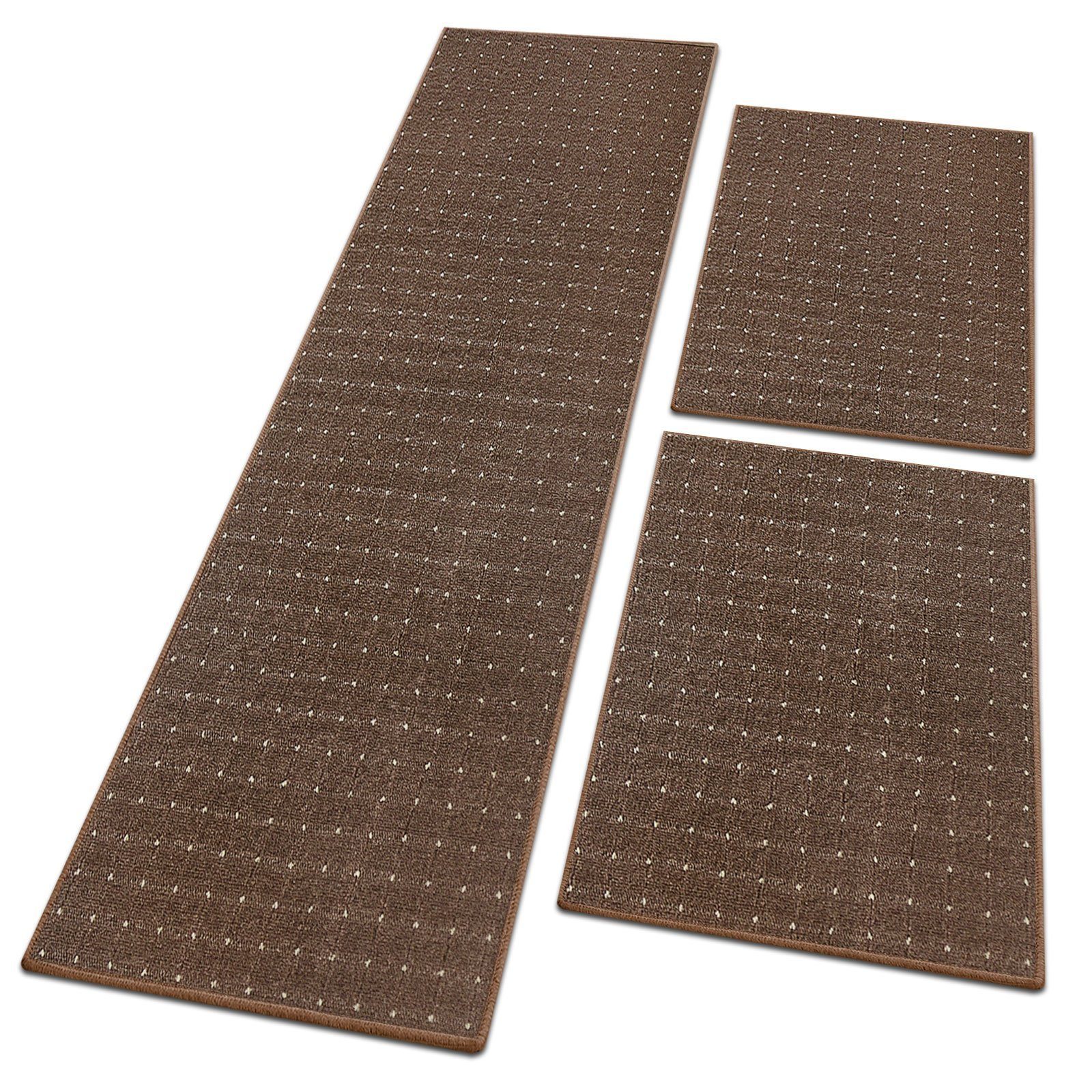 Mit der Bettumrandung „Rapido“ holen Sie sich ein modernes und hochwertiges Läufer-Set ins Schlafzimmer. Bestehend aus drei Teilen – zwei kurzen Teppich-Brücken, die zur rechten und zur linken Seite des Bettes ihren Platz finden, und einem langen Läufer für die Stirnseite – erhält Ihr Bett eine elegante Umrandung aus angenehmem Schlingenpol.