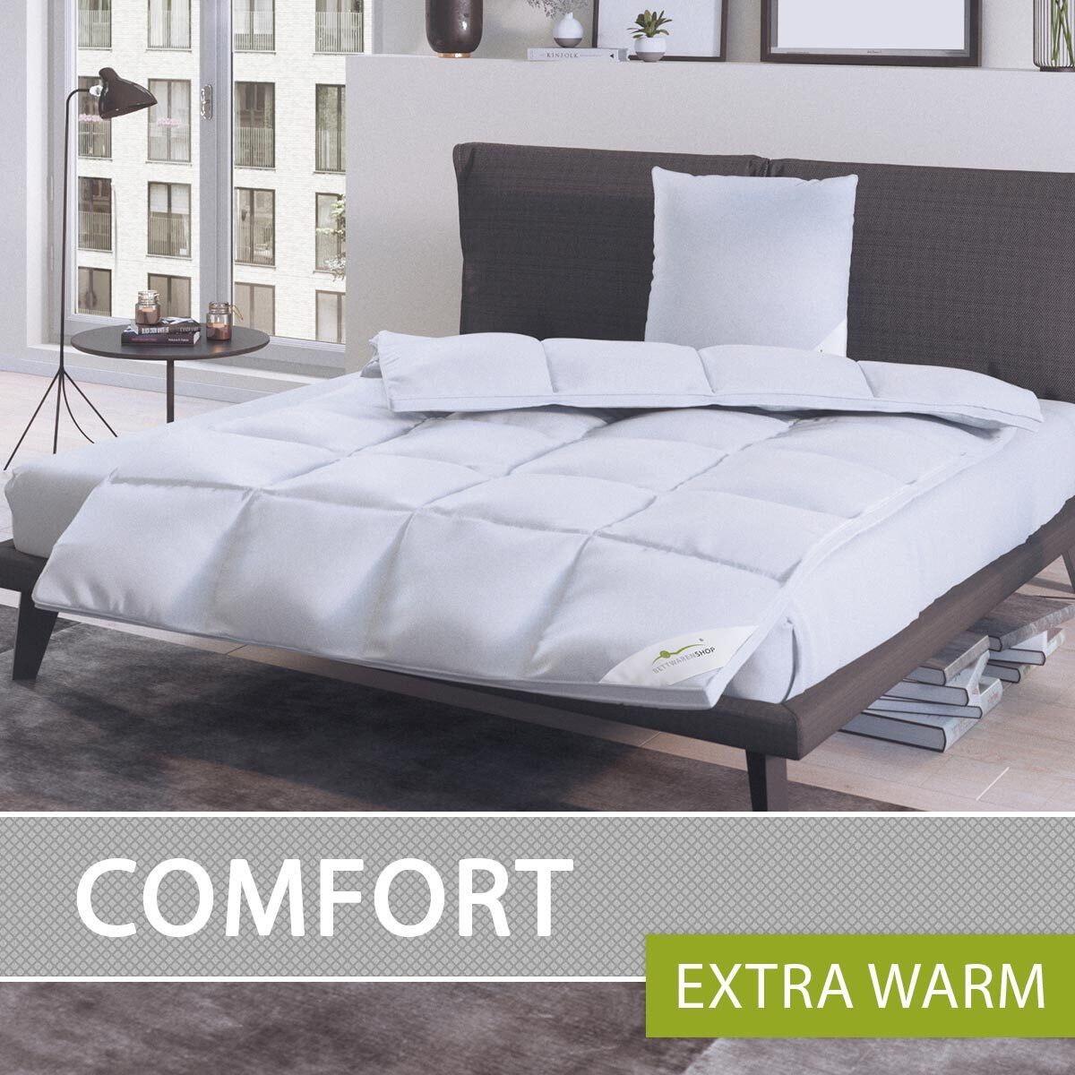 Materialzusammensetzung | Bezug: 100% Baumwolle, Füllung: 60% Daunen, 40% Federn |