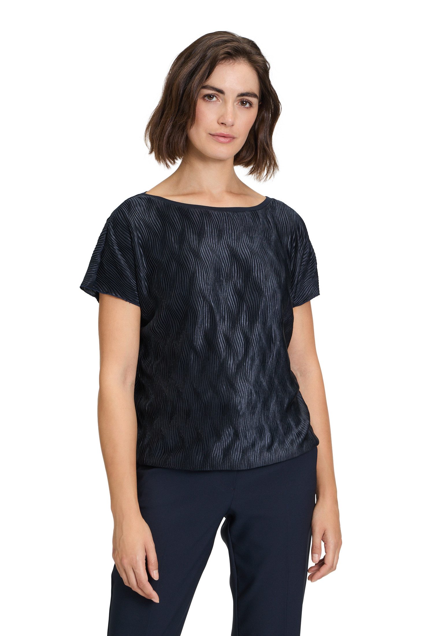 Anlass: Feminin Ausschnittform: U-Boot-Ausschnitt Besonderheit: Material Futter: ohne Futter Füllung: ohne Füllung Gesamtlänge: 56 cm Hauptbesonderheit: Material Kollektionsvariante: HW2024 Materialhinweis: Enthält keine nicht-textilen Bestandteile tierischen Ursprungs Materialart: nicht erforderlich Muster: Uni Oberteil: nicht erforderlich Passform: Lässig Pflegehinweis: Schonwäsche 30 Grad nicht Bleichen Nicht in Trockner nicht bügeln nicht Reinigen Rückteil: nicht erforderlich Stil: Feminin Tasche: ohne Tasche Anzahl Teile: 1 Besondere Merkmale: Material Herstellerpassform: Lässig Materialzusammensetzung: Obermaterial: 100 % Polyester. Ärmelform: Überschnittener Arm Ärmellänge: Halbarm Serie: 10329_11091